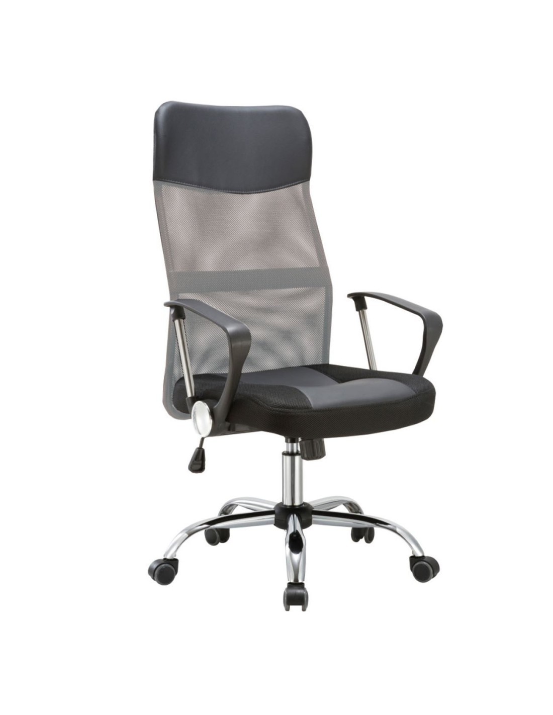 - 1 BF2400-PVC Πολυθρόνα Γραφείου Διευθυντή, Βάση Χρώμιο, Pvc - Mesh, Γκρι - Μαύρο (ΕΟ502,4P)