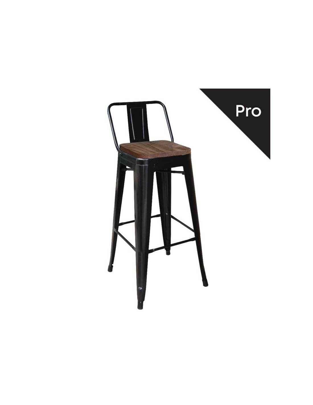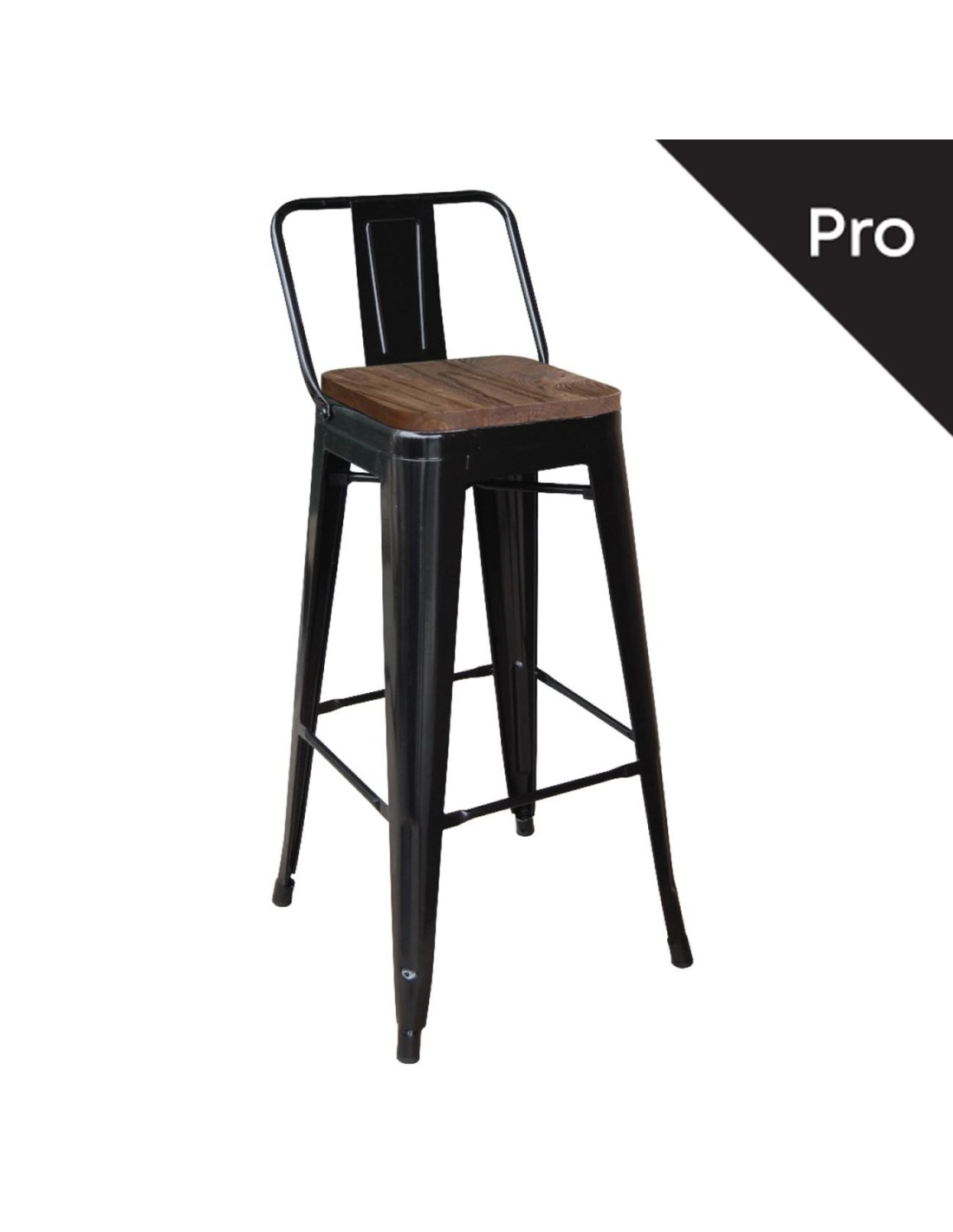RELIX Wood Σκαμπό Bar-Pro με Πλάτη, Μέταλλο Βαφή Μαύρο Μatte, Απόχρωση Ξύλου Dark Oak