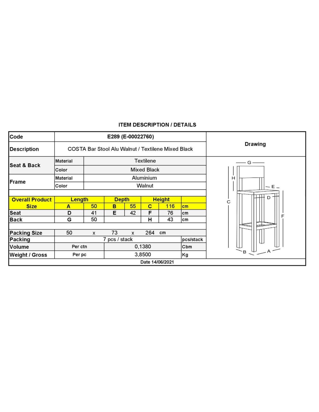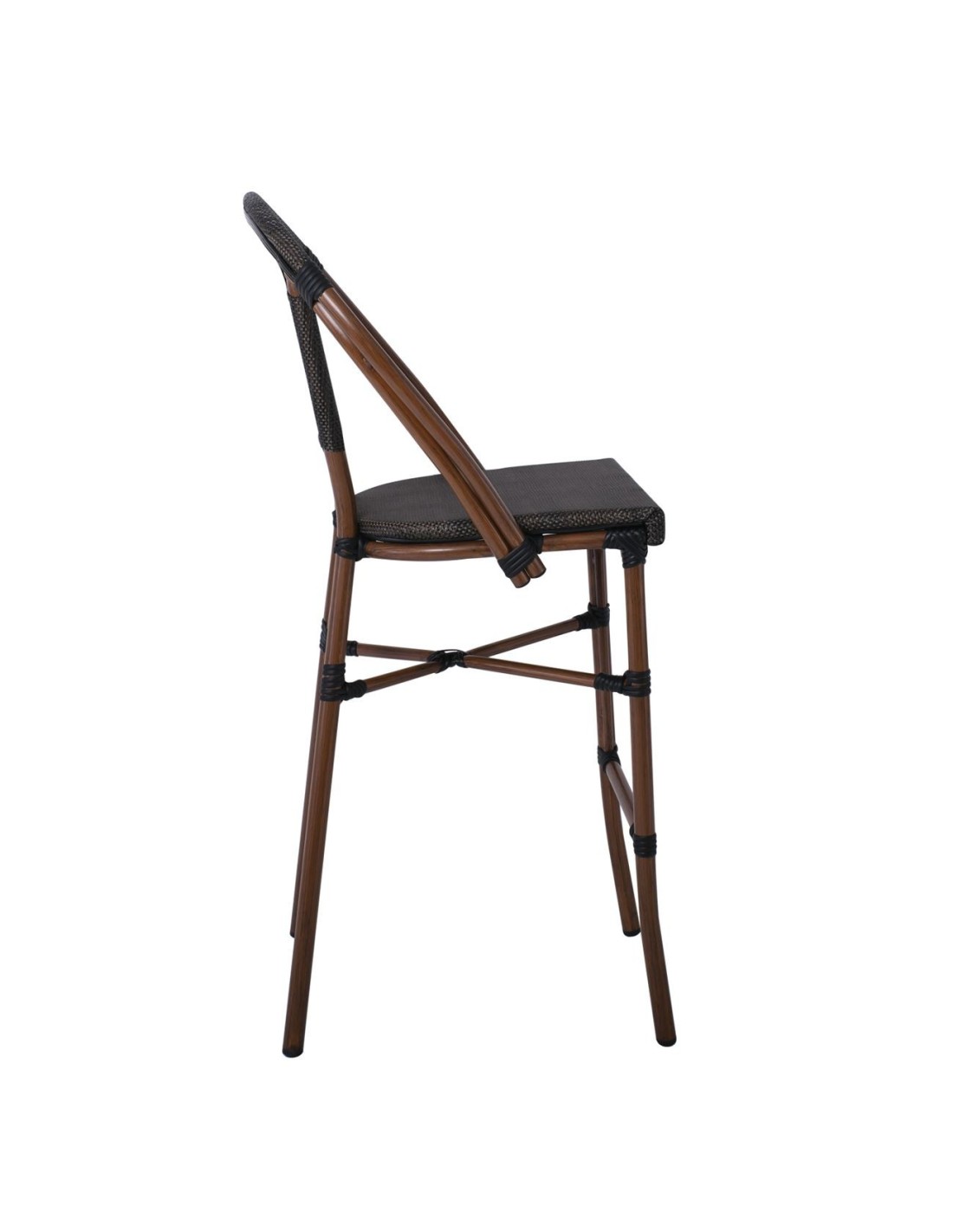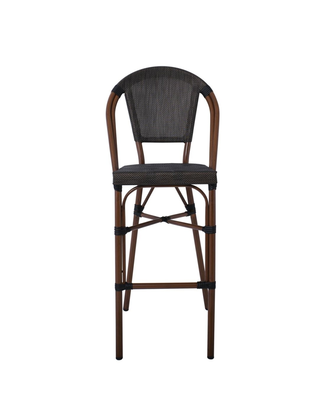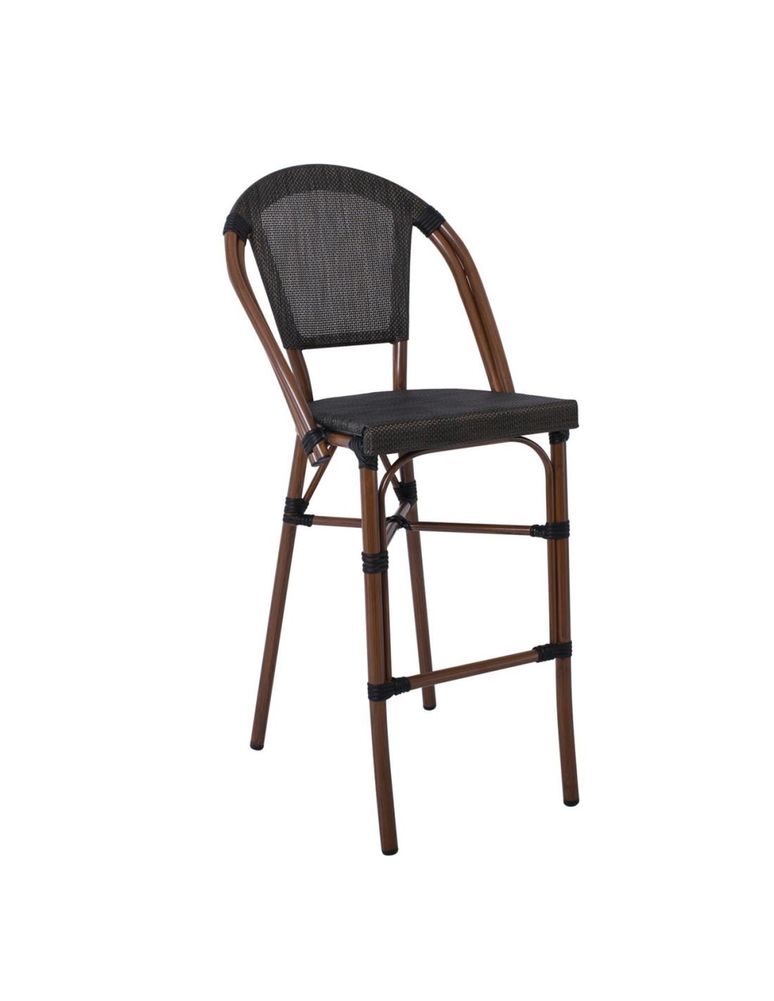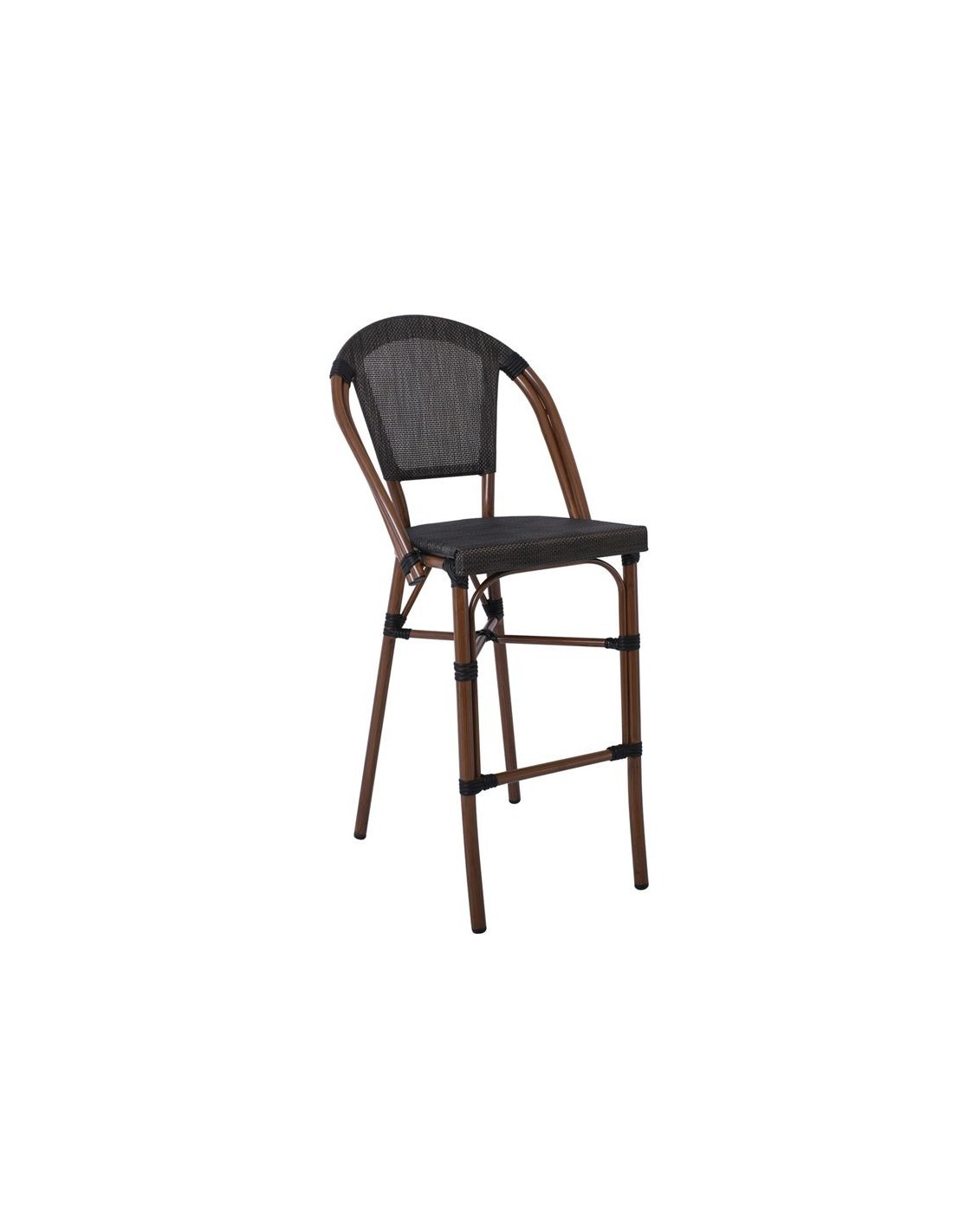 COSTA Σκαμπό BAR με Πλάτη, Αλουμίνιο Απόχρωση Καρυδί, Textilene Μαύρο