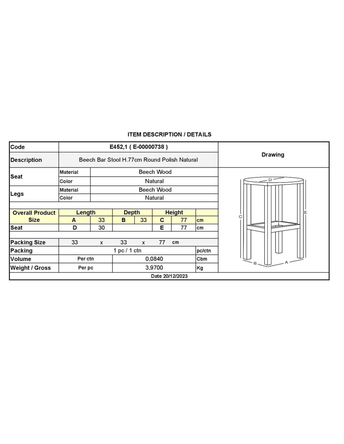 ΟΞΙΑ Σκαμπό BAR Στρογγυλό, Λούστρο Φυσικό