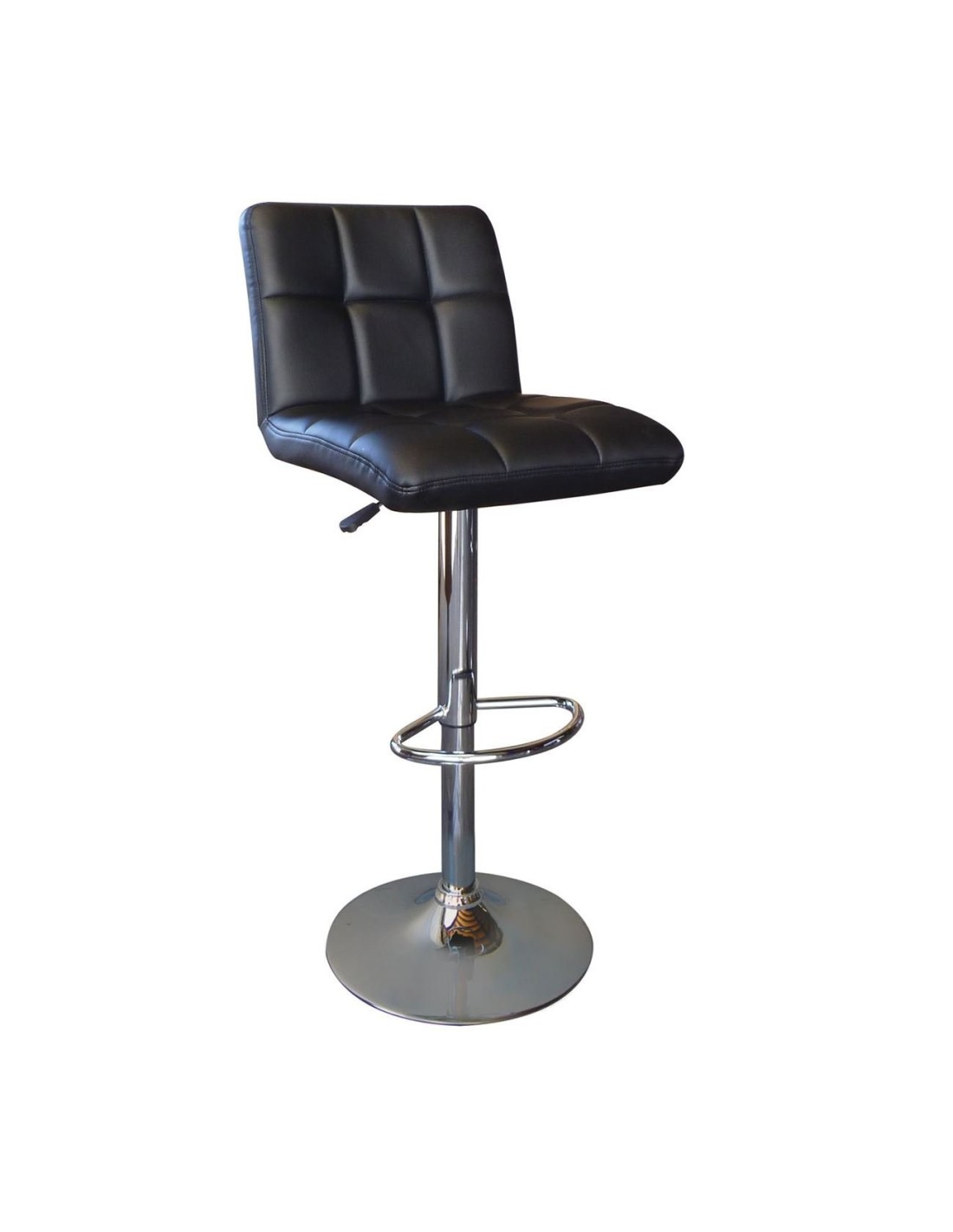 LINO Σκαμπό BAR με Πλάτη, Χρώμιο, PU Μαύρο, Ρυθμιζόμενο Ύψος, Περιστρεφόμενο