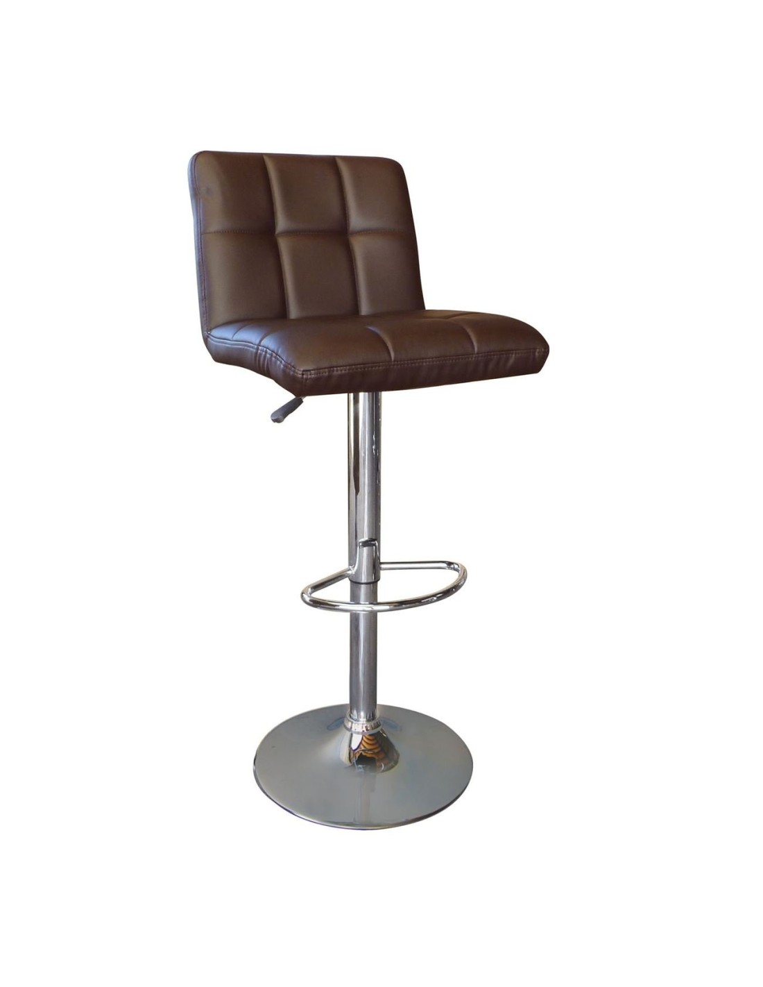 LINO Σκαμπό BAR με Πλάτη, Χρώμιο, PU Σκούρο Καφέ, Ρύθμιση Ύψους, Περιστρεφόμενο