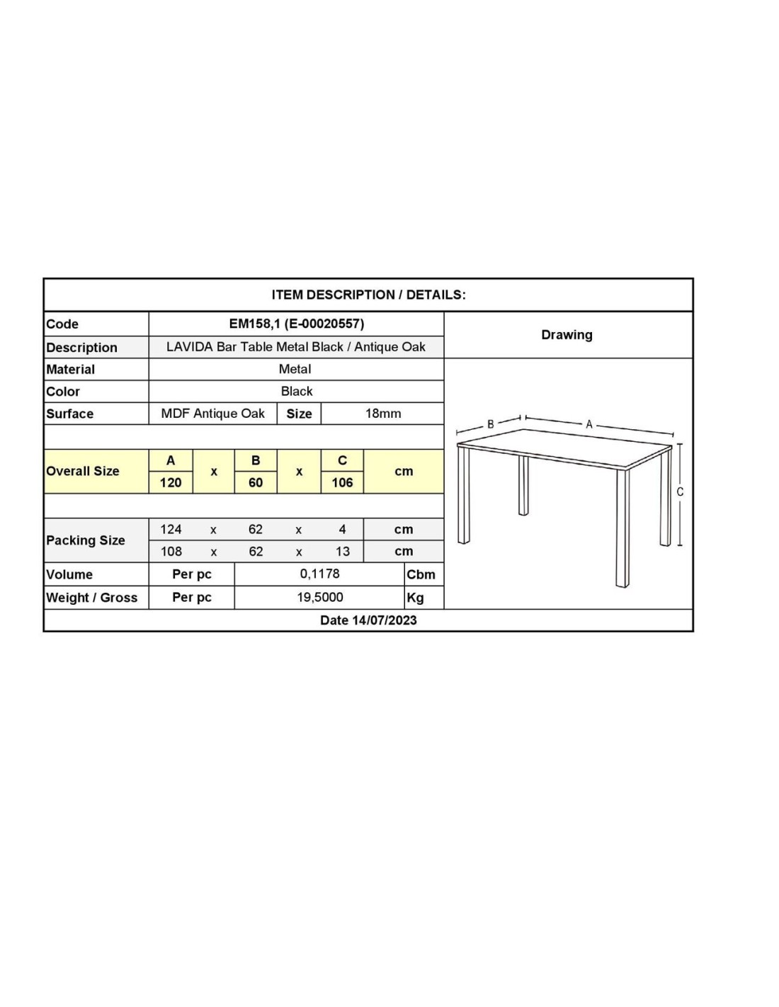 LAVIDA Τραπέζι BAR Μέταλλο Βαφή Μαύρο, Επιφάνεια Απόχρωση Καρυδί