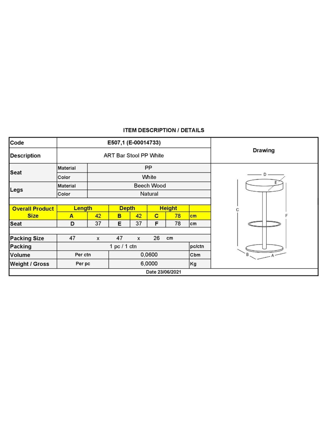 ART Σκαμπό BAR, Ξύλο Φυσικό, PP Άσπρο