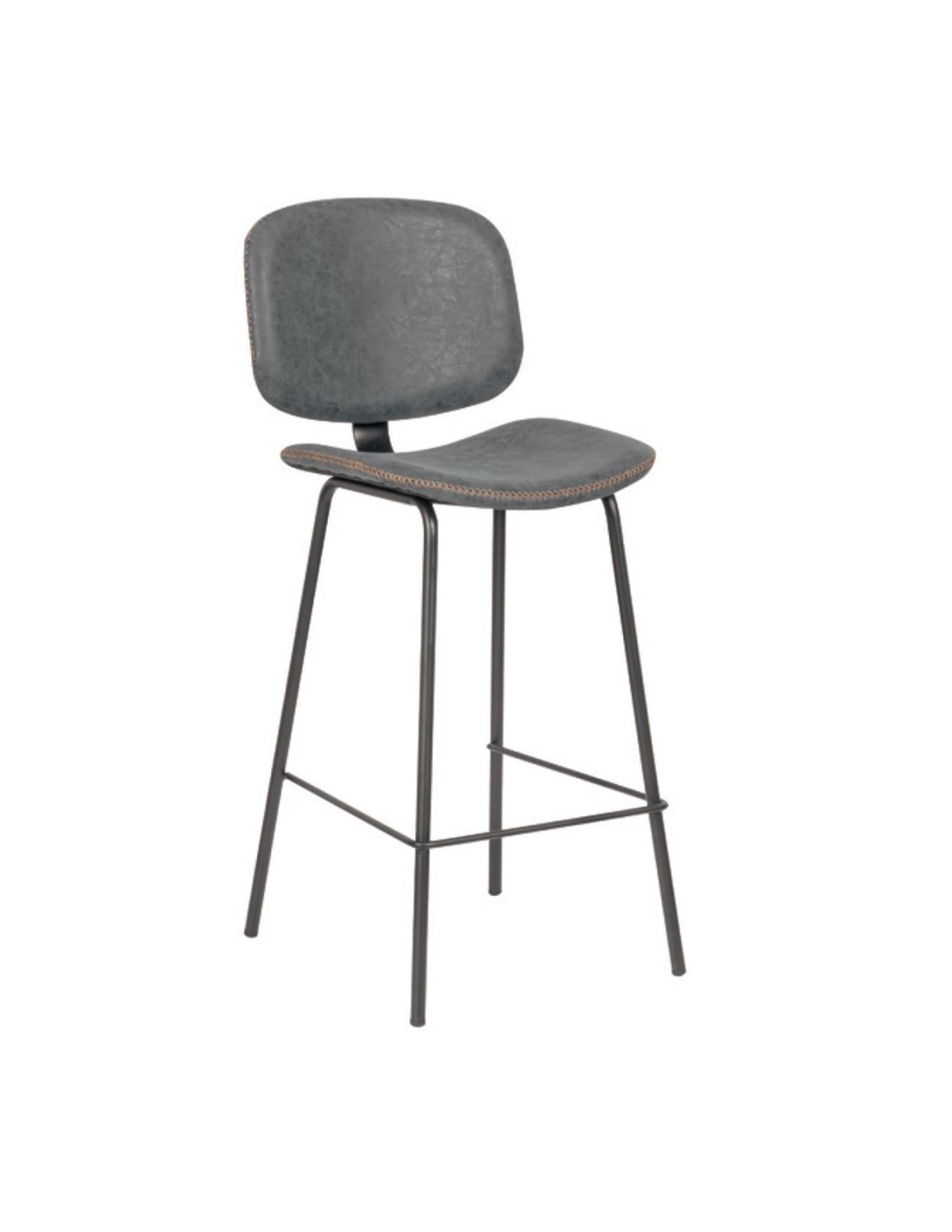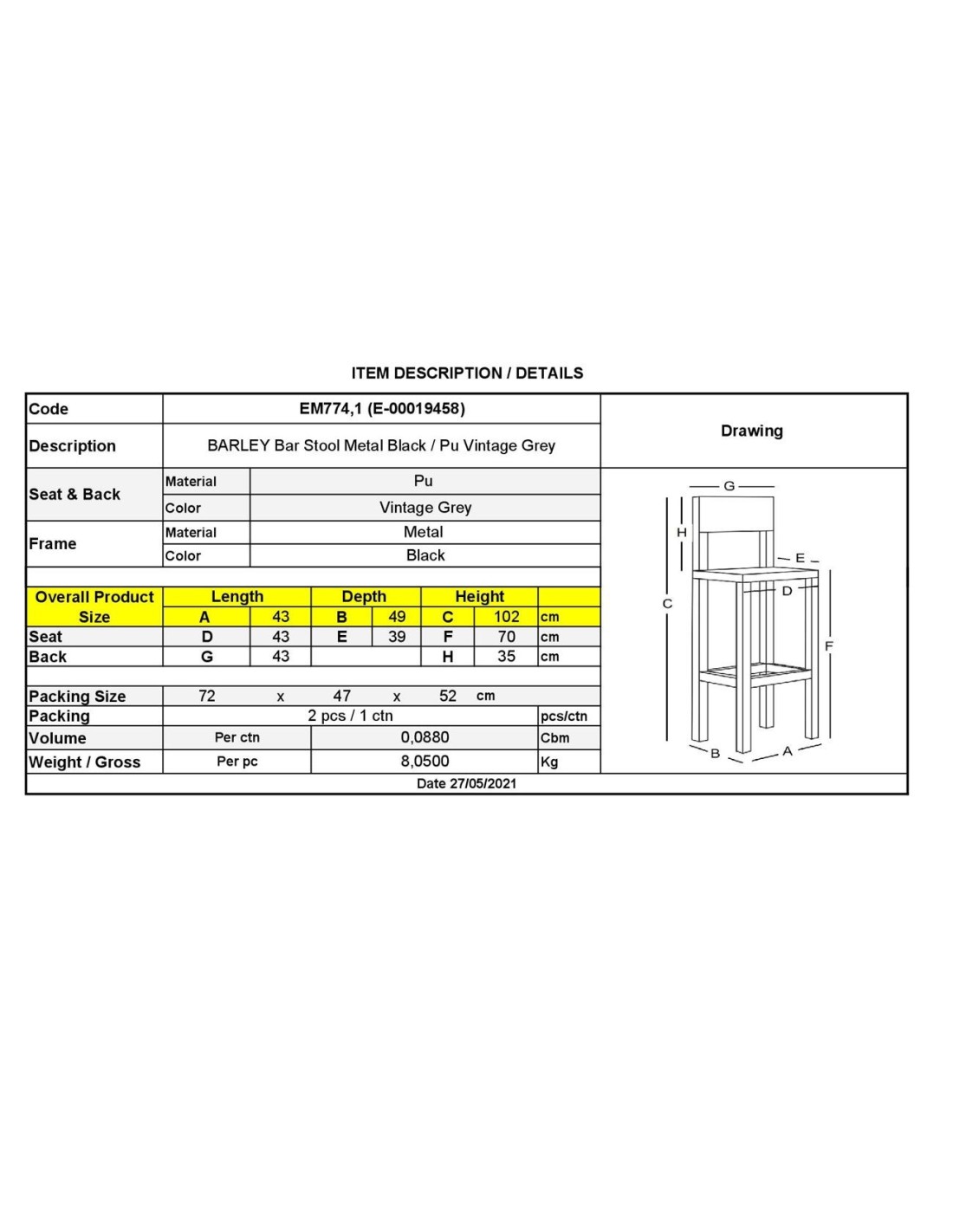 BARLEY Σκαμπό ΒAR με Πλάτη, Μέταλλο Βαφή Μαύρο, PU Απόχρωση Vintage Grey