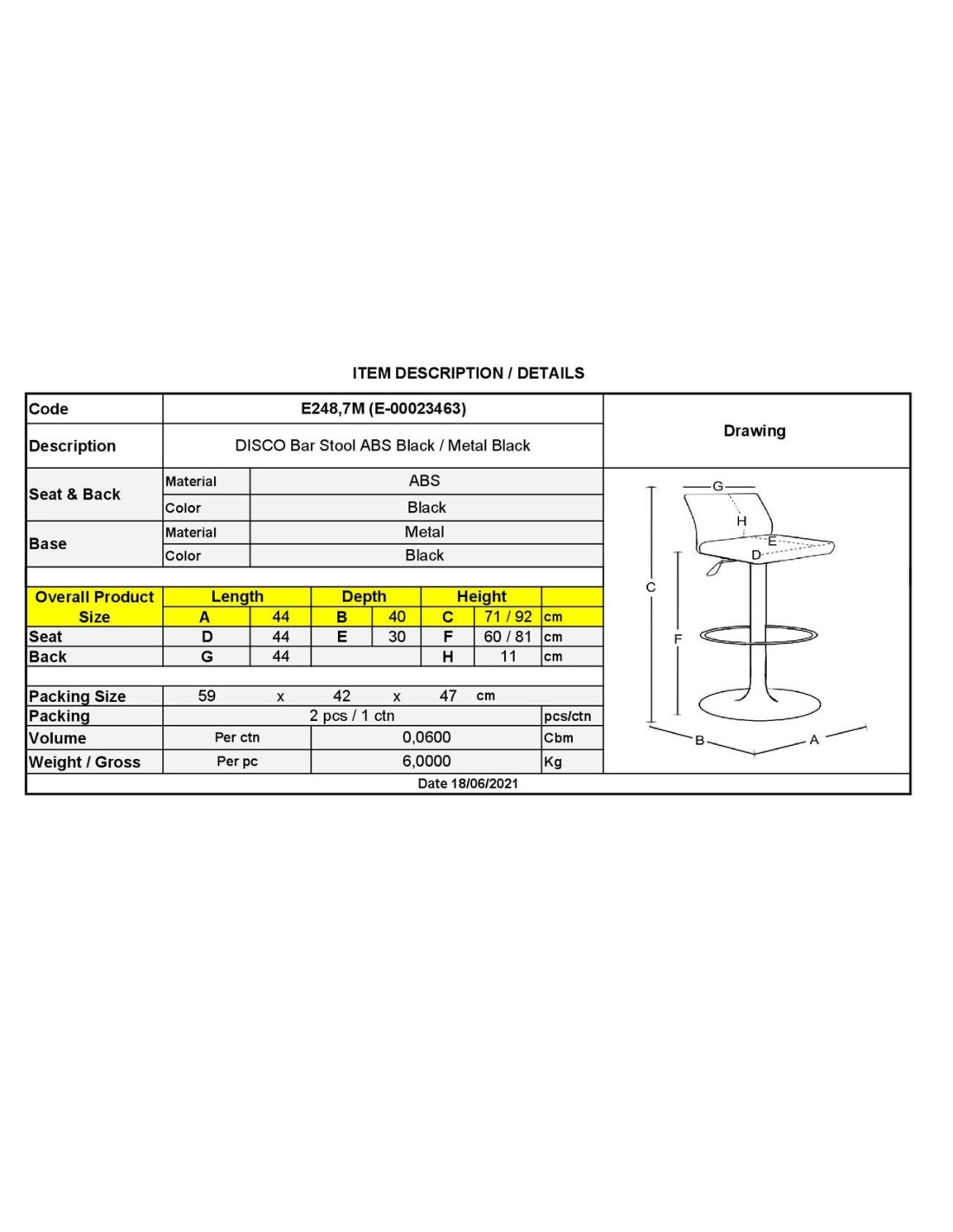 DISCO Σκαμπό BAR, Μέταλλο Βαφή Μαύρο, ABS Μαύρο, Ύψος Ρυθμιζόμενο, Περιστρεφόμενο