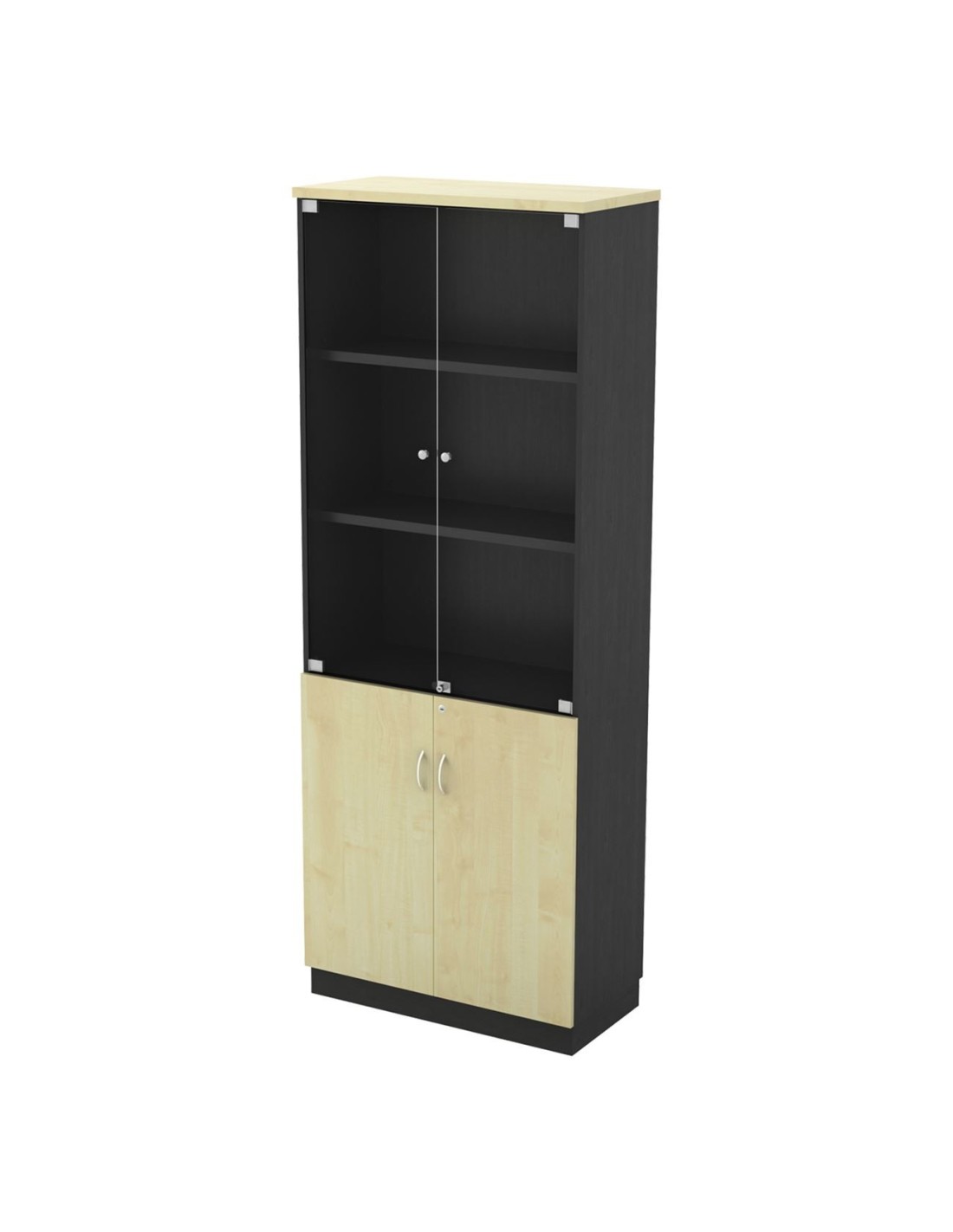 ΒΙΒΛΙΟΘΗΚΗ Γραφείου με Πόρτες Γυάλινες, Ντουλάπι Δίφυλλο, Απόχρωση Dark Grey - Beech