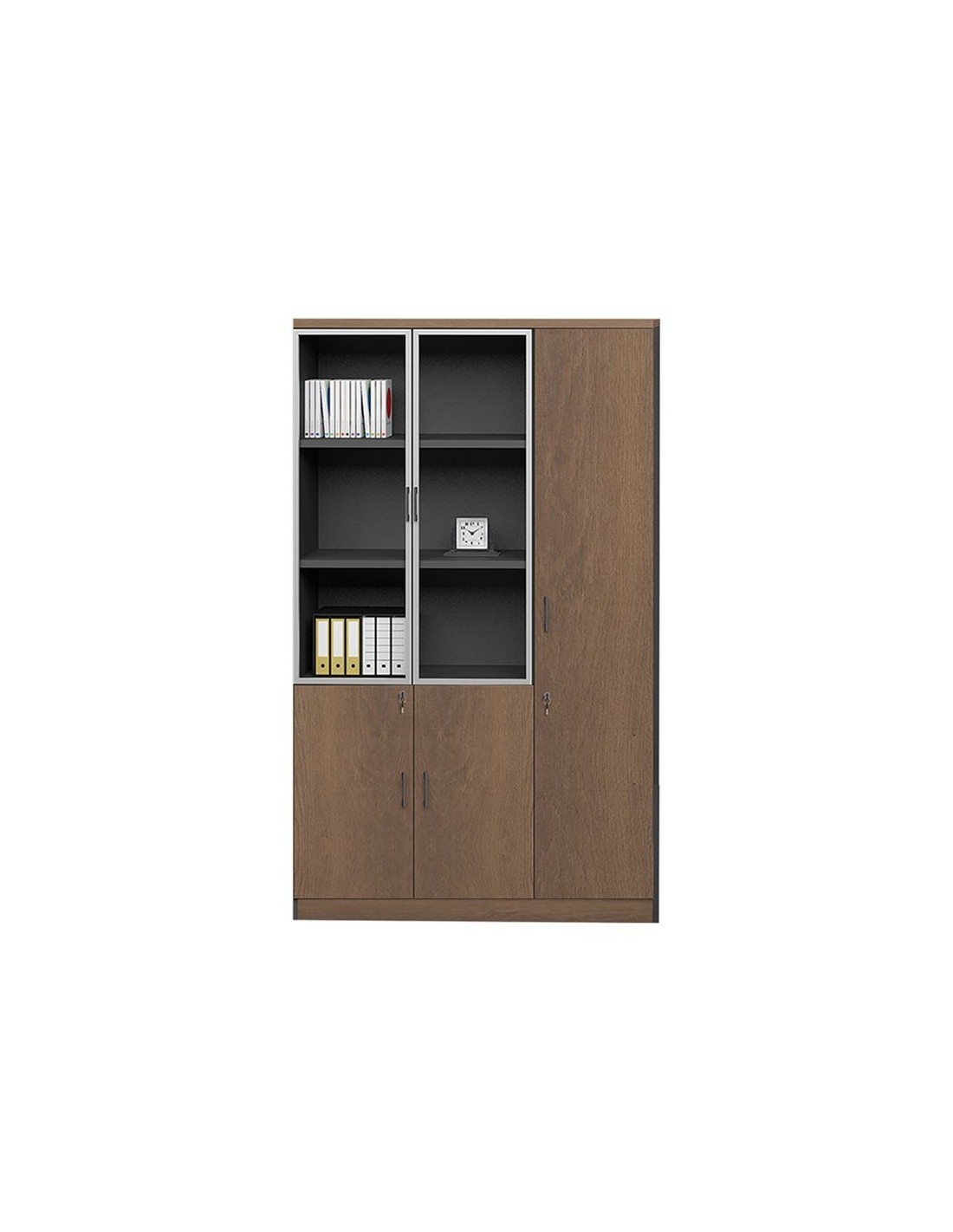 PROLINE Ντουλάπα - Βιβλιοθήκη Γραφείου Δεξιά, Πεντάφυλλη (2 Γυάλινα) Καρυδί Δρυς-Μαύρο