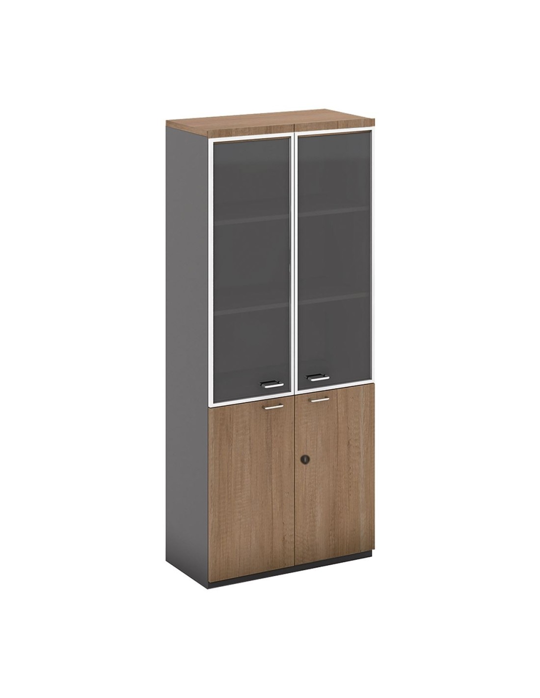 PROLINE Βιβλιοθήκη Γραφείου, 3 Ράφια Πόρτες Γυαλί, Ντουπάπι, Απόχρωση Καρυδί Δρυς - Μαύρο