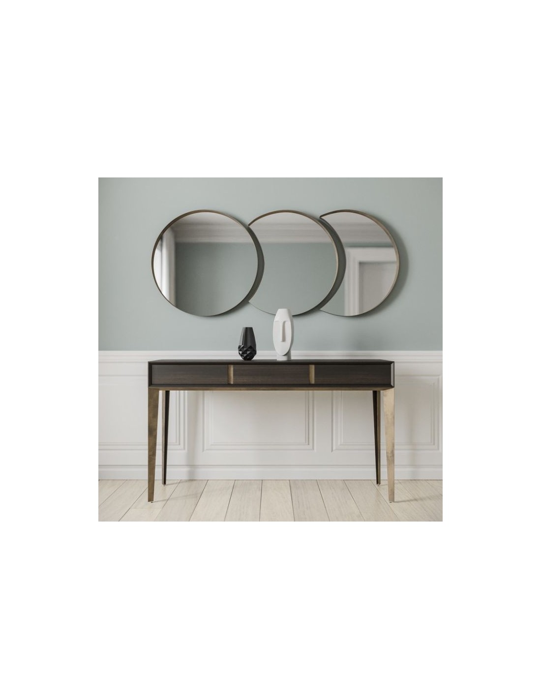 Ξύλινη κονσόλα με μεταλλικό σκελετό και συρτάρια.