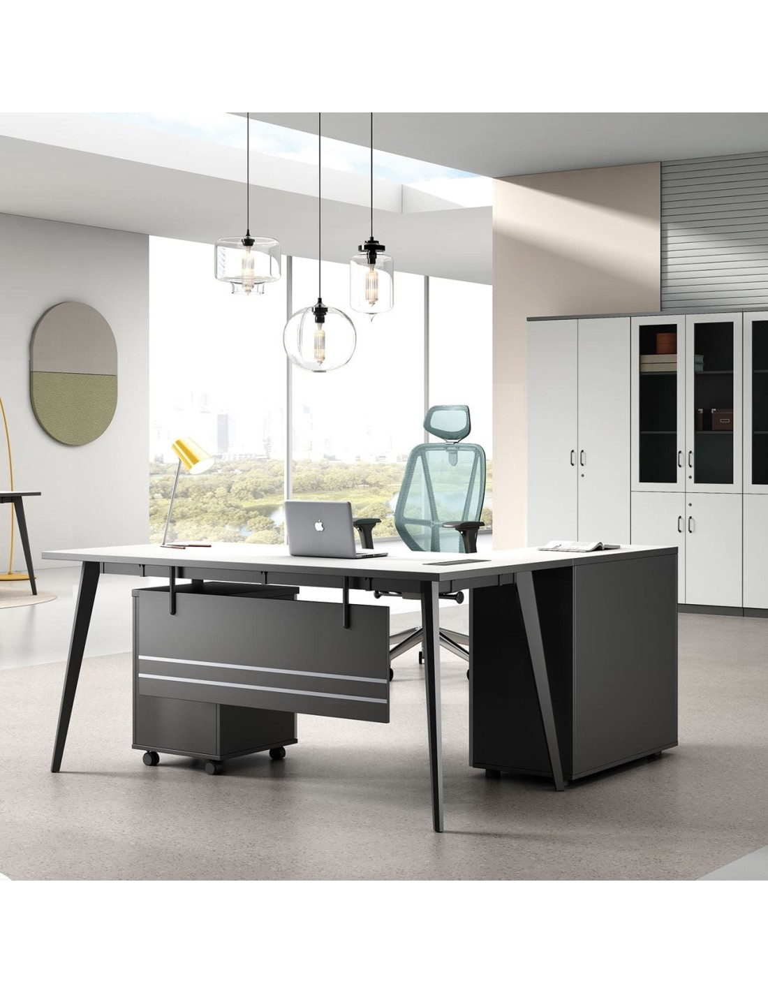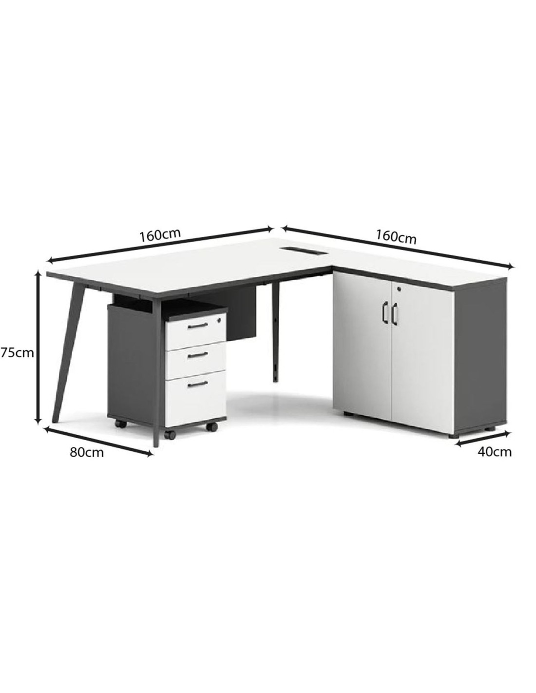 STATUS Γραφείο Γωνία Αναστρέψιμη, Απόχρωση Grey, Επιφάνεια Απόχρωση Άσπρο