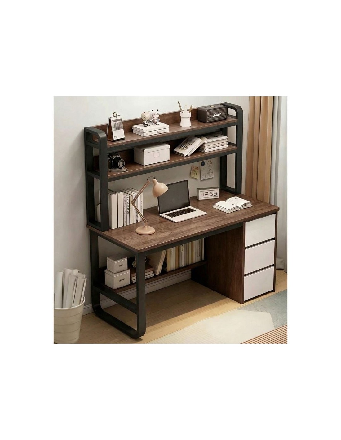 ΓΡΑΦΕΙΟ Η-Υ 3 Συρτάρια 3 Ράφια Μέταλλο Βαφή Μαύρο, MDF Απόχρωση Καρυδί