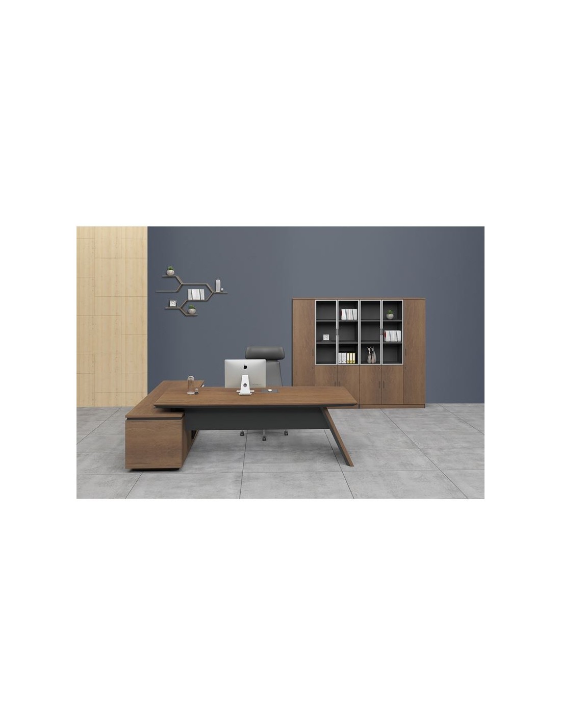 PROLINE Γραφείο Δεξιά Γωνία Απόχρωση Καρυδί Δρυς - Μαύρο