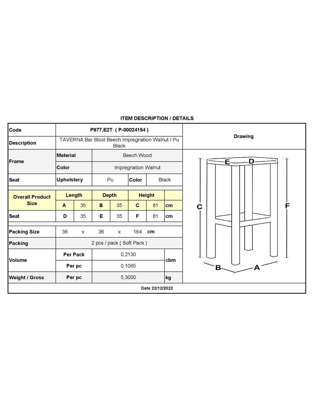 ΤΑΒΕΡΝΑΣ Σκαμπό BAR, Οξιά Βαφή Εμποτισμός Καρυδί, Κάθισμα Pu Μαύρο
