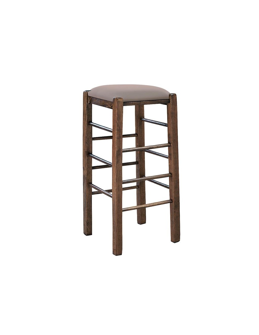 ΤΑΒΕΡΝΑΣ Σκαμπό BAR, Οξιά Βαφή Εμποτισμός Καρυδί, Κάθισμα Pu Cappuccino