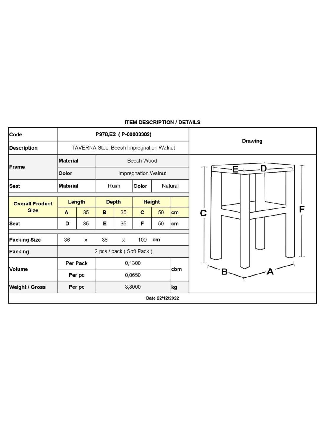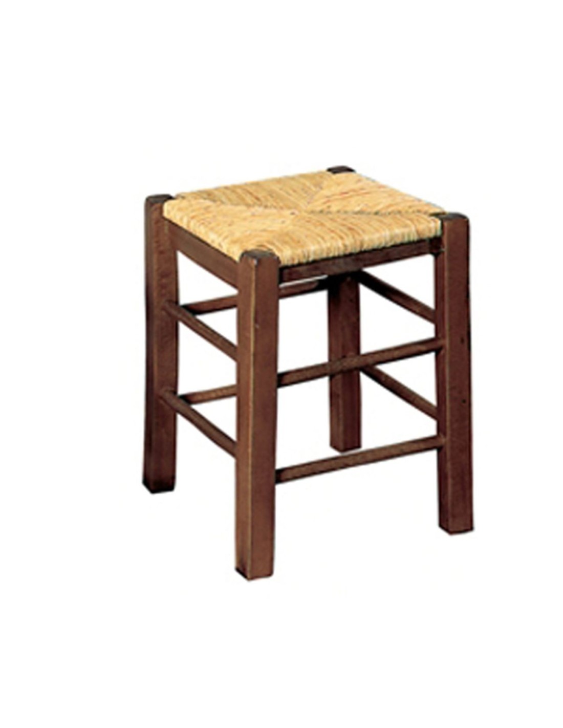 ΤΑΒΕΡΝΑΣ Σκαμπό Βοηθητικό, Οξιά Εμποτισμός Καρυδί, Κάθισμα Ψάθα