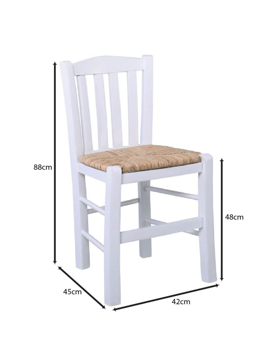 CASA Καρέκλα Οξιά Βαφή Εμποτισμού Λάκα Άσπρο, Κάθισμα Ψάθα