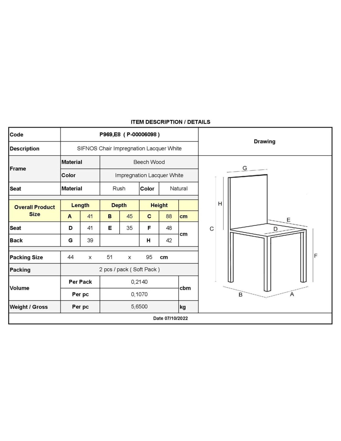 ΣΙΦΝΟΣ Καρέκλα Οξιά Βαφή Εμποτισμού Λάκα Άσπρο, Κάθισμα Ψάθα