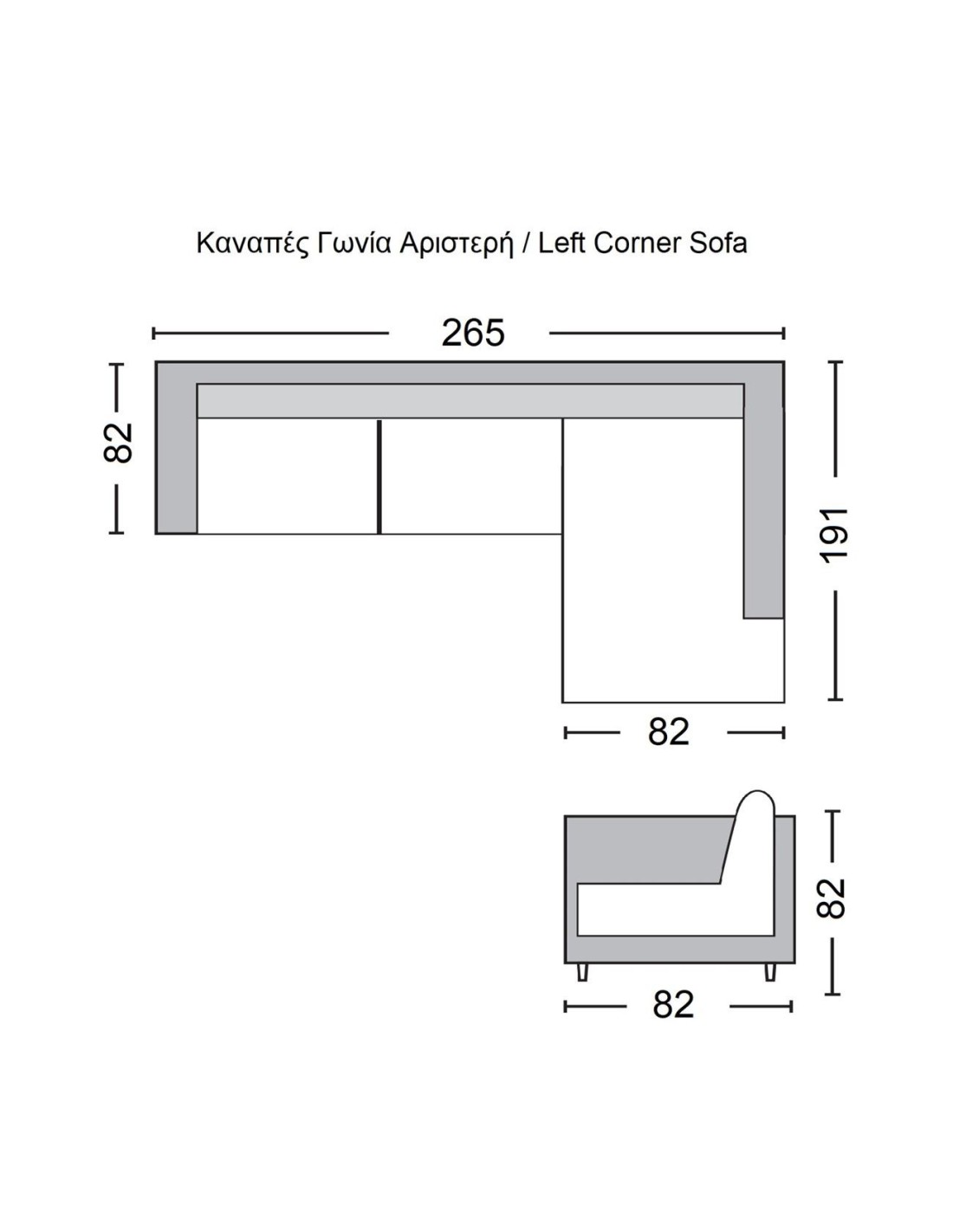 SECTOR Καναπές Σαλονιού Αριστερή Γωνία, Ανακλινόμενα Κεφαλάρια, Pu Μαύρο
