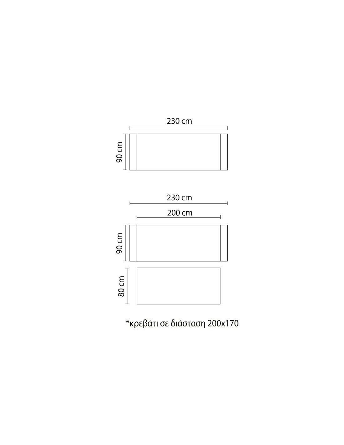 Διαστάσεις κρεβατιού: 170×230 cm