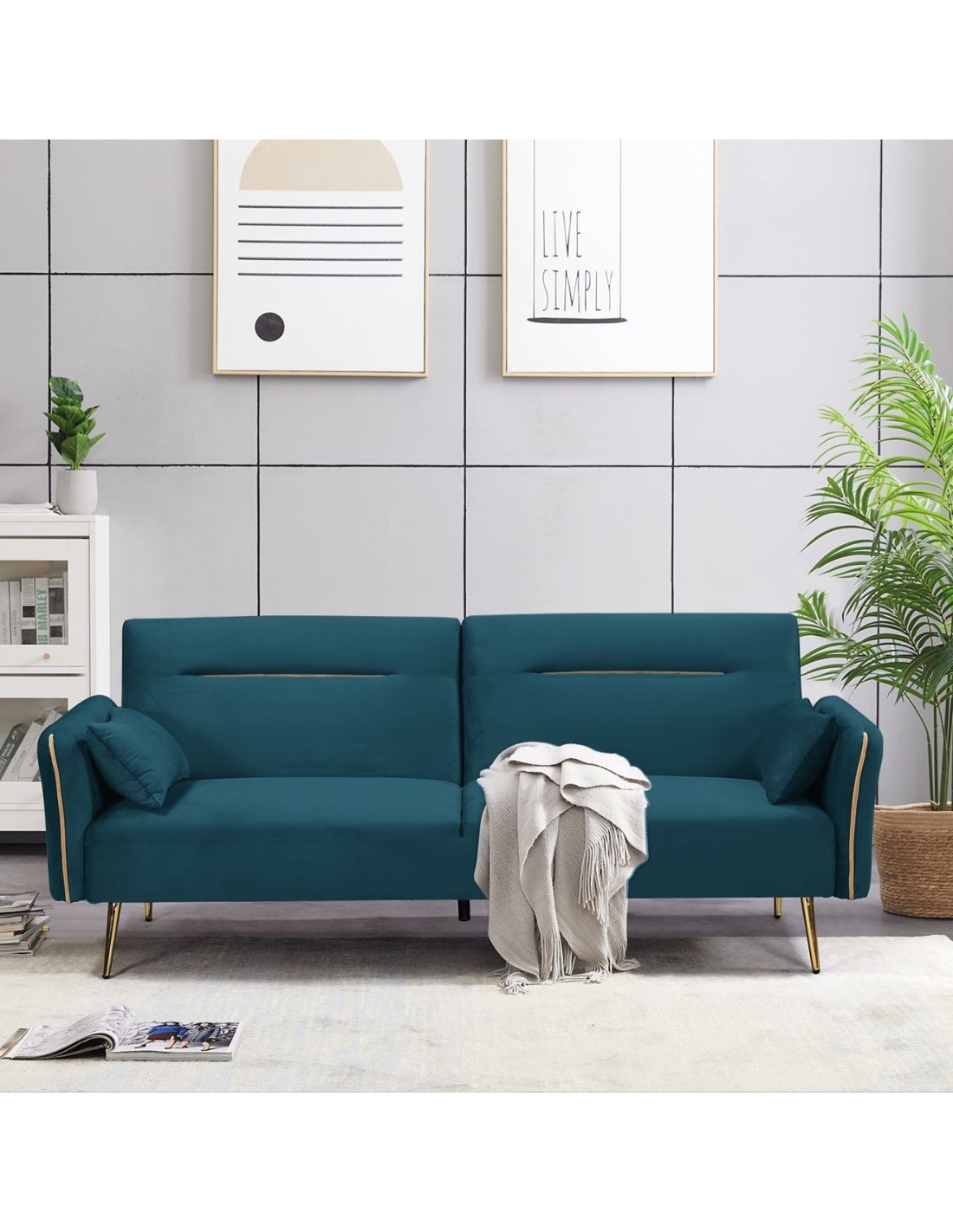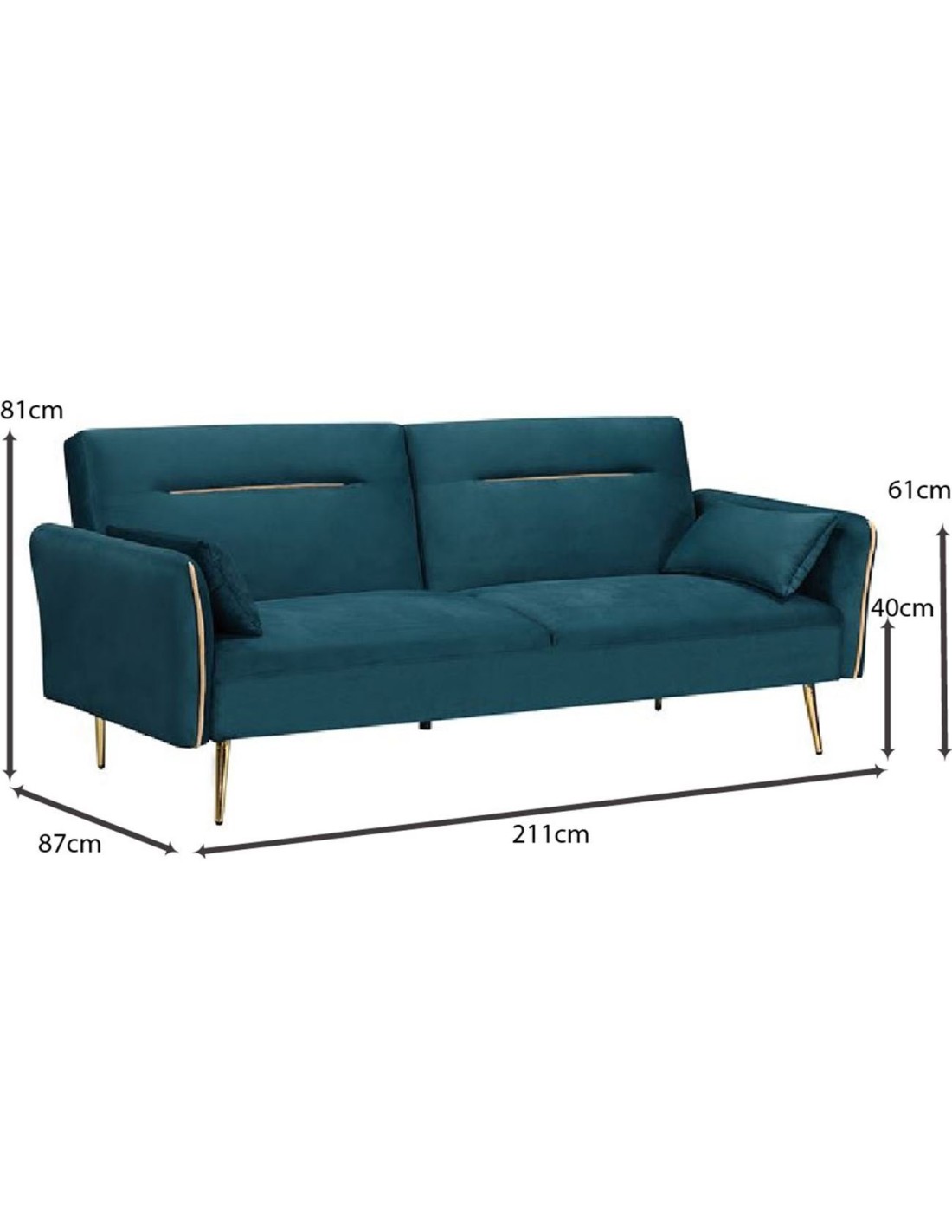 FLICK Καναπές - Κρεβάτι Σαλονιού - Καθιστικού, 3Θέσιος Ύφασμα Velure Petrol