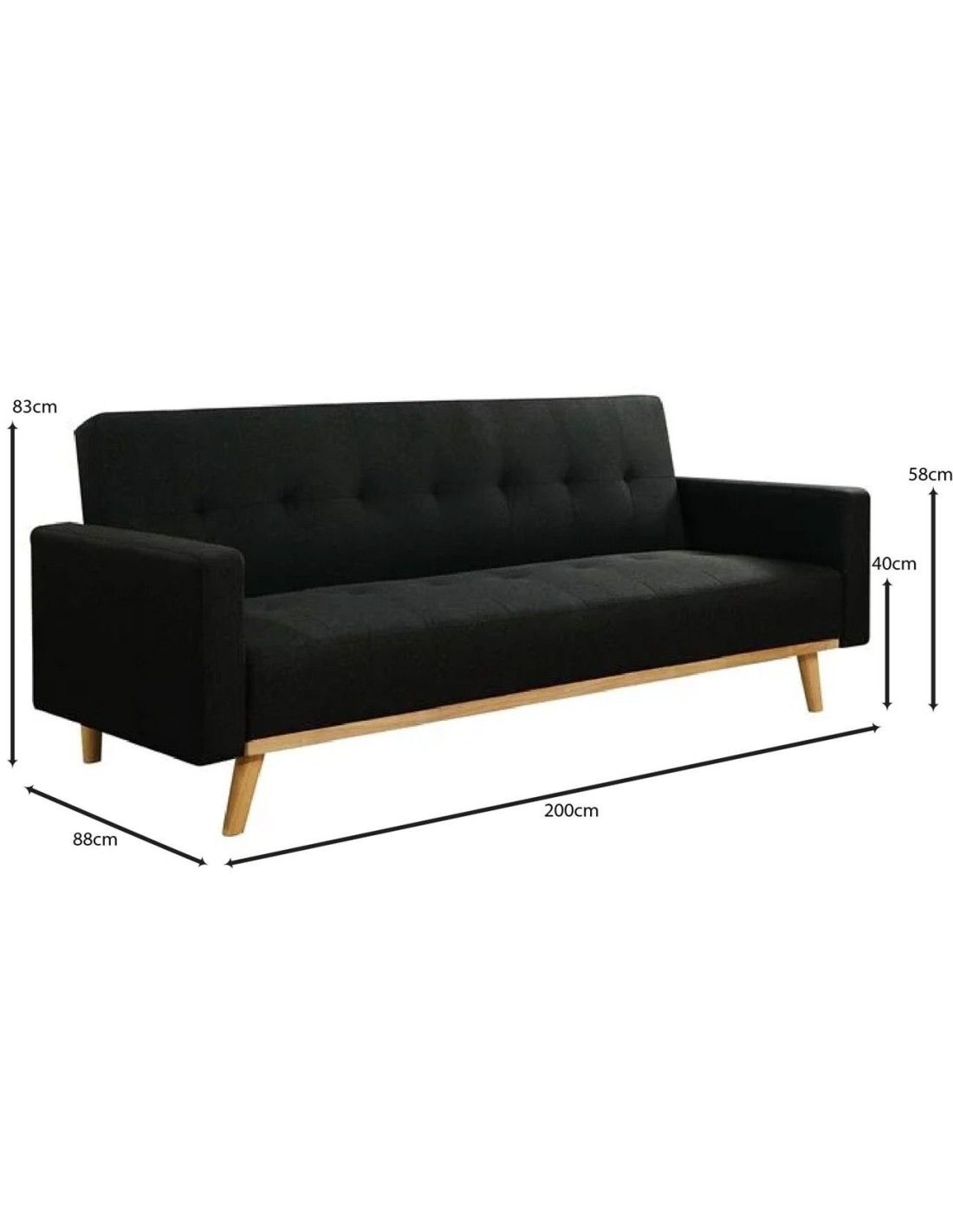 CARLOS Καναπές - Κρεβάτι Σαλονιού Καθιστικού, Ύφασμα Μαύρο