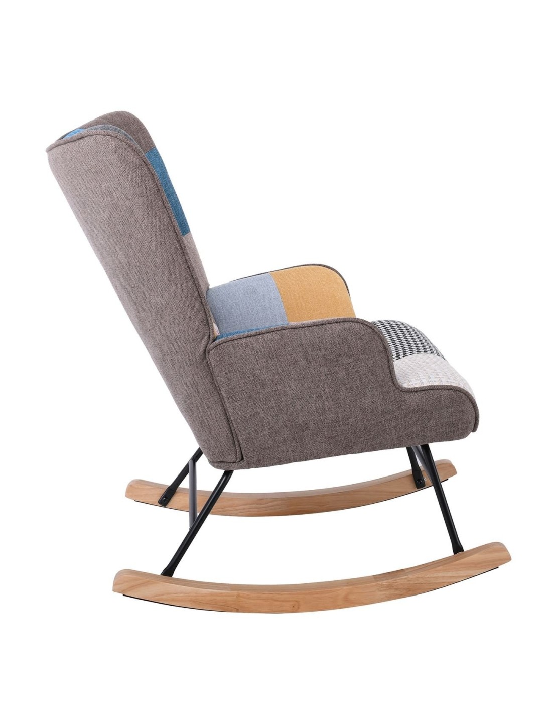 ALMA Rocking Πολυθρόνα Μπερζέρα Καθιστικού, Ύφασμα Patchwork, Βάση Μαύρο-Φυσικό