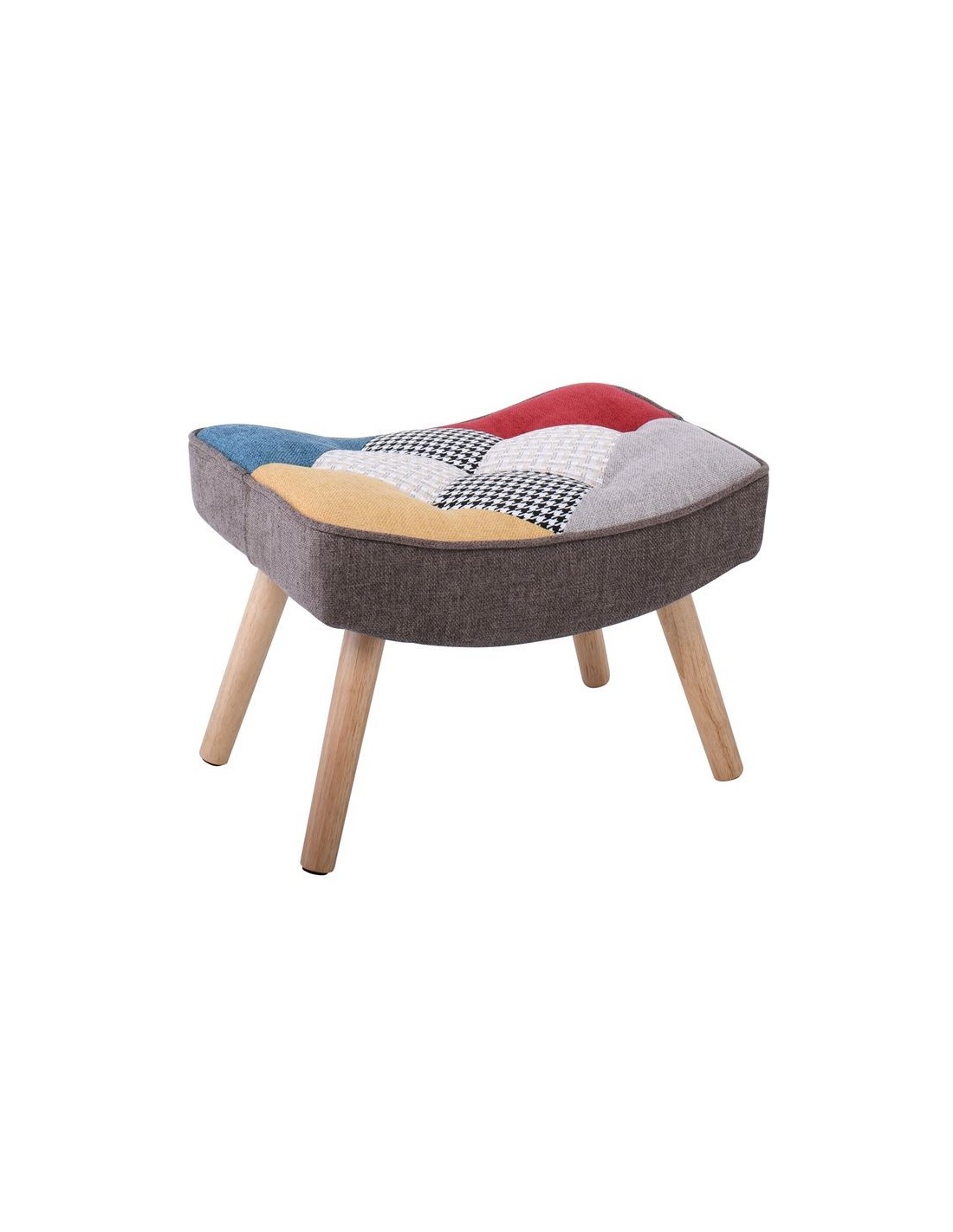 ALMA Σκαμπό - Υποπόδιο, Σαλονιού - Καθιστικού Φυσικό, Ύφασμα Patchwork, K-D