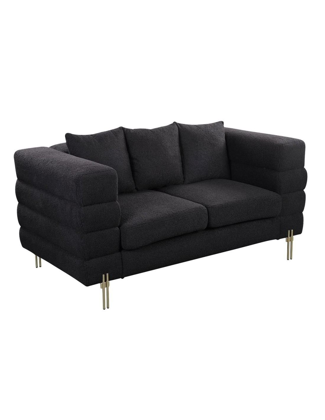 MORRIS Καναπές 2Θέσιος Σαλονιού - Καθιστικού, Ύφασμα Teddy Μαύρο