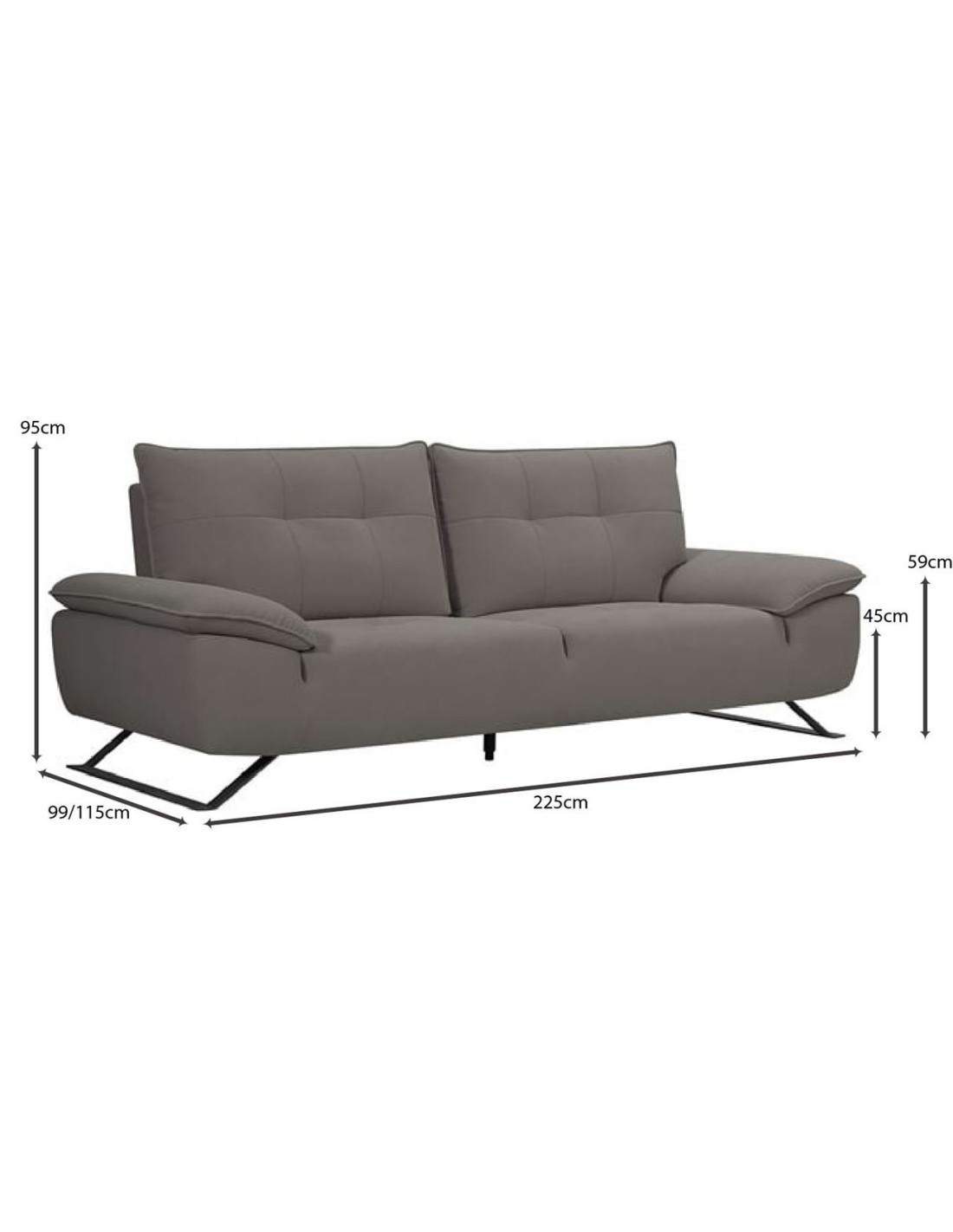 SELENA Καναπές 3-θέσιος Σαλονιού - Καθιστικού, Ύφασμα Γκρι, Μεταφερόμενη πλάτη