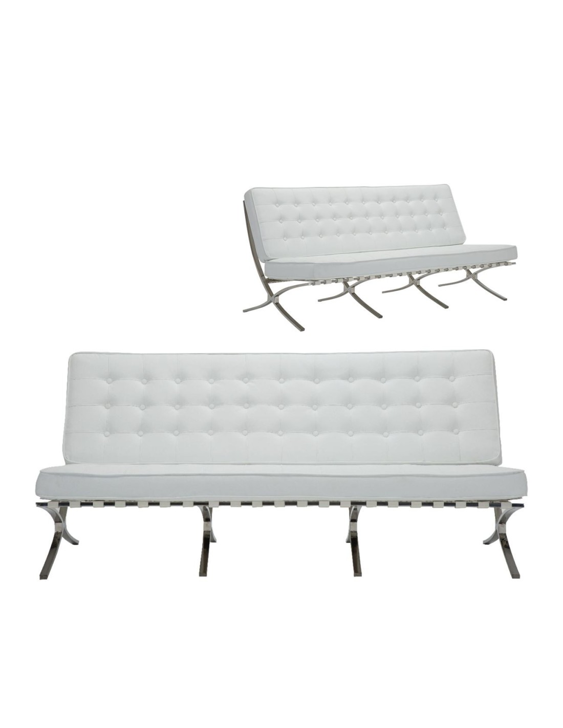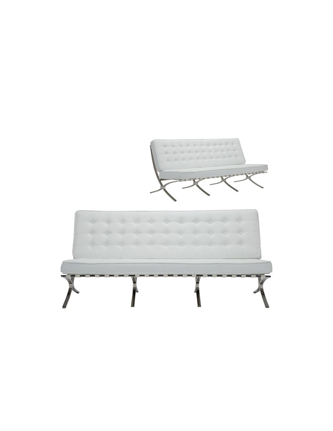 BARCELONA τ. Καναπές Σαλονιού Καθιστικού 3Θέσιος Inox - Pu Άσπρο