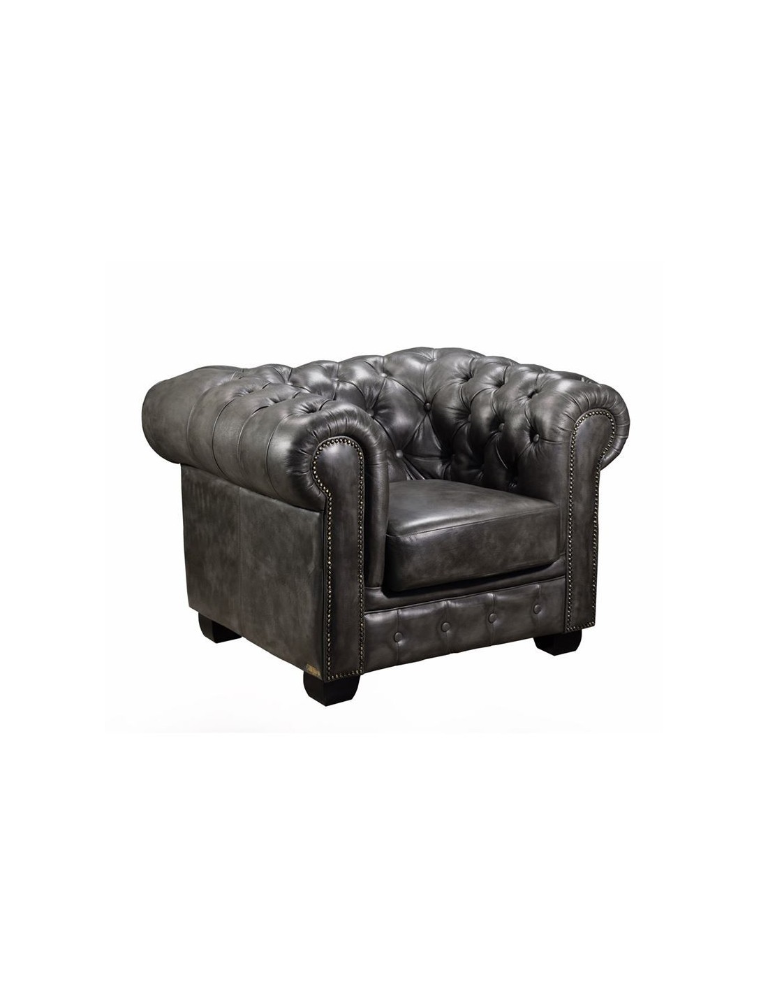 CHESTERFIELD Birmingham Πολυθρόνα Σαλονιού Καθιστικού, Δέρμα Antique Grey