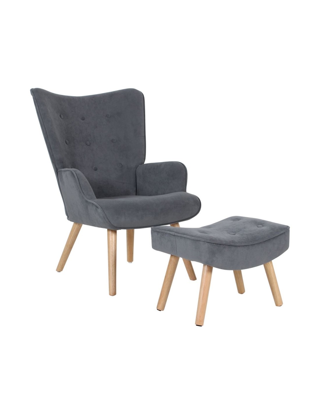 ALMA Πολυθρόνα - Μπερζέρα με Σκαμπό - Υποπόδιο Φυσικό Ύφασμα Velure Γκρι, K-D
