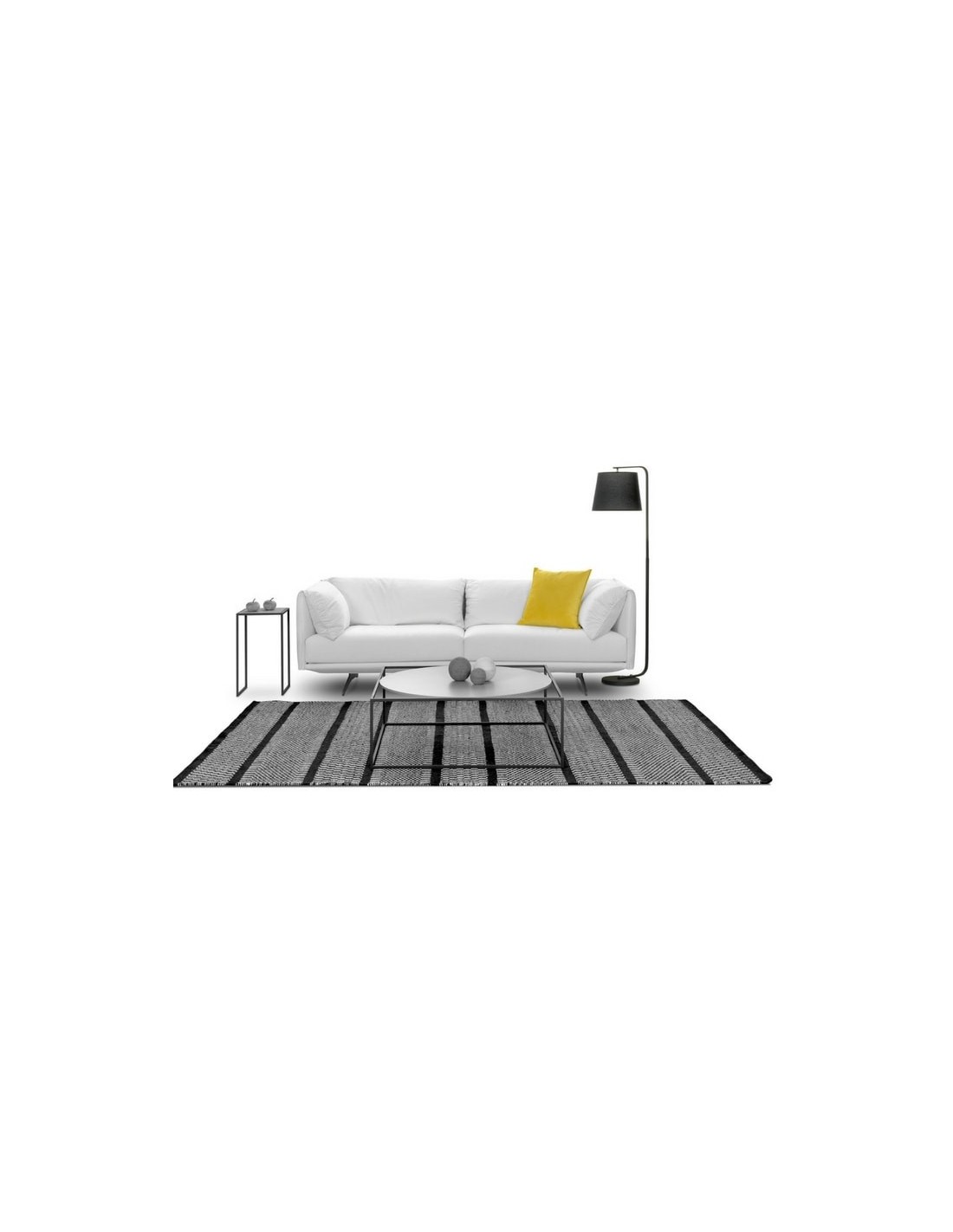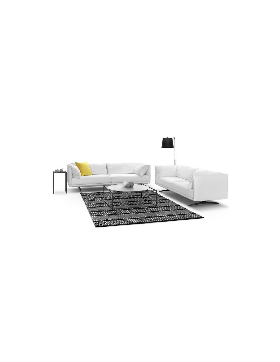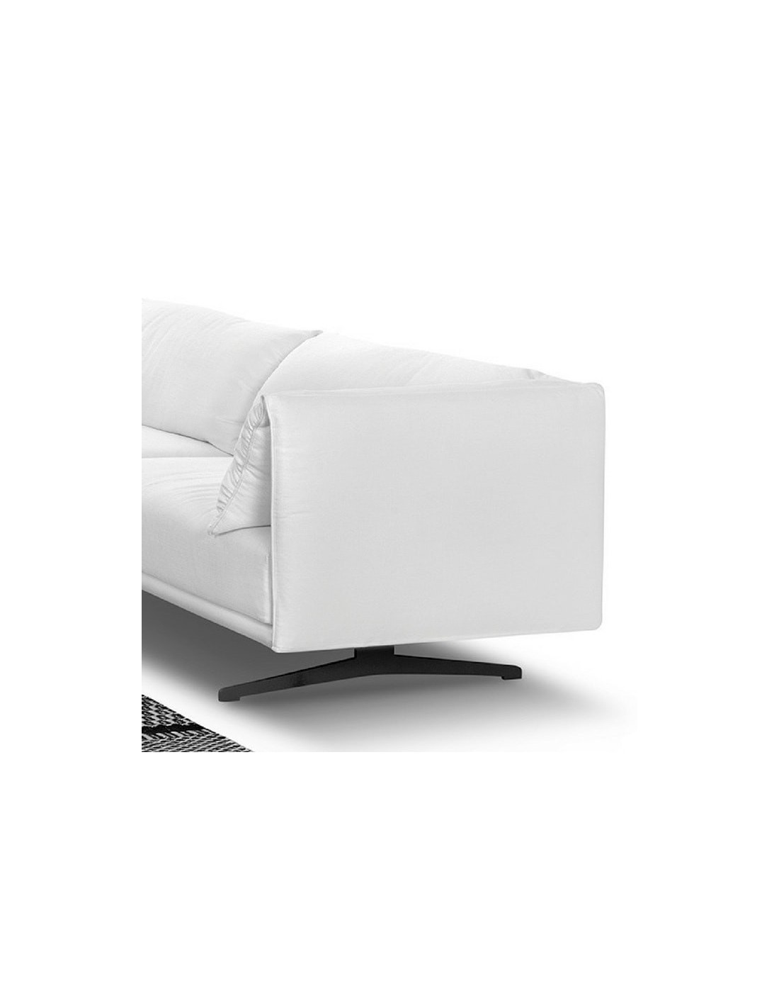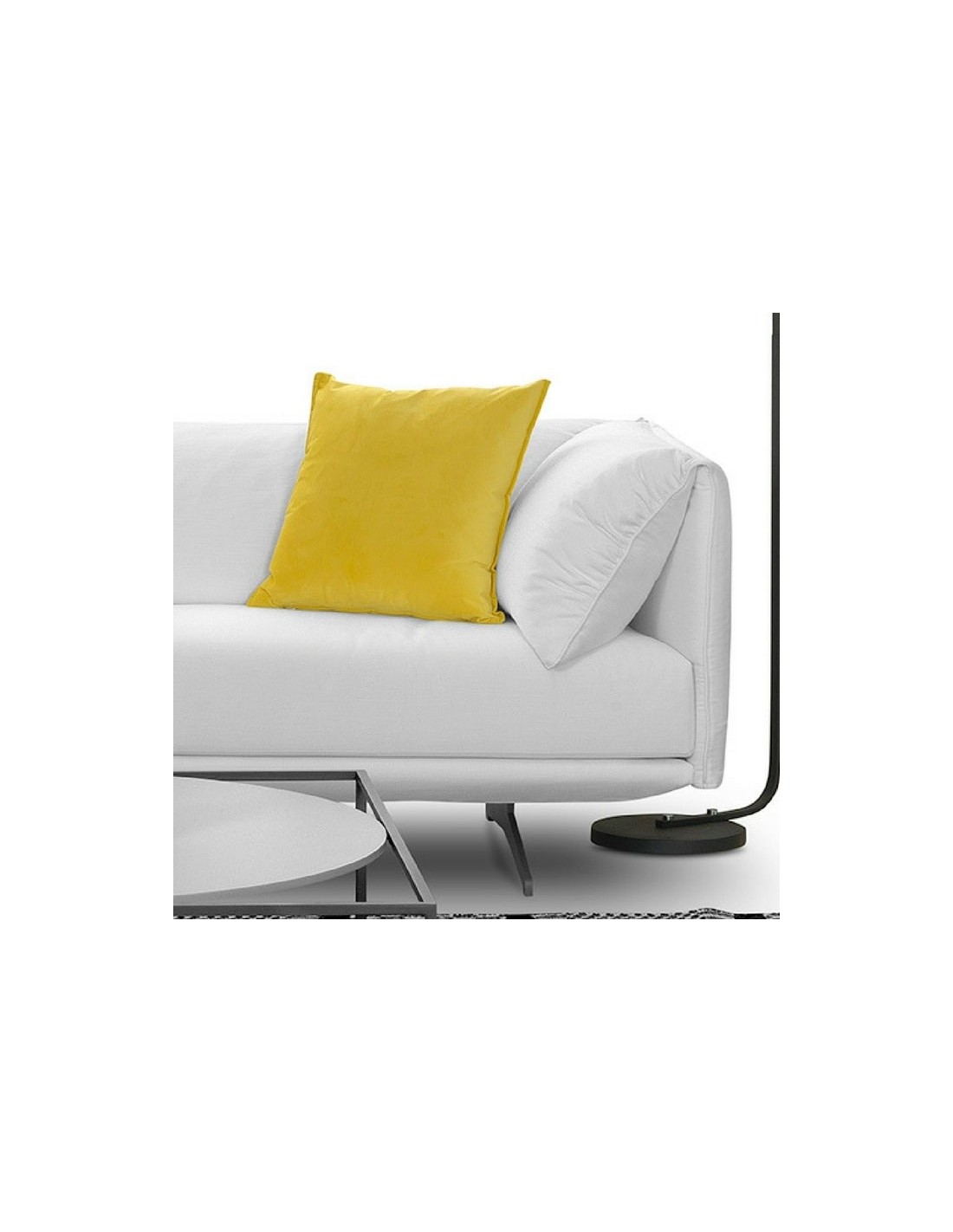 Αναπαυτικός καναπές με άνετα μαξιλάρια και μεταλλικά πόδια.