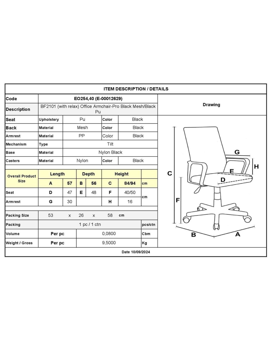 BF2101 Πολυθρόνα-Pro Γραφείου με Ανάκλιση, Μαύρο Mesh - PU Μαύρο
