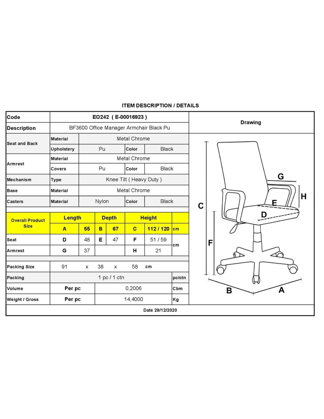 BF3600 Πολυθρόνα Διευθυντή Μέταλλο Βάση Χρώμιο, PU Μαύρο
