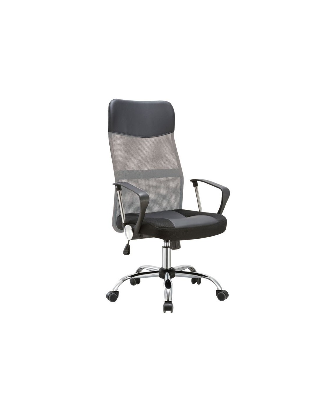 BF2400-PVC Πολυθρόνα Γραφείου Διευθυντή, Βάση Χρώμιο, Pvc - Mesh, Γκρι - Μαύρο