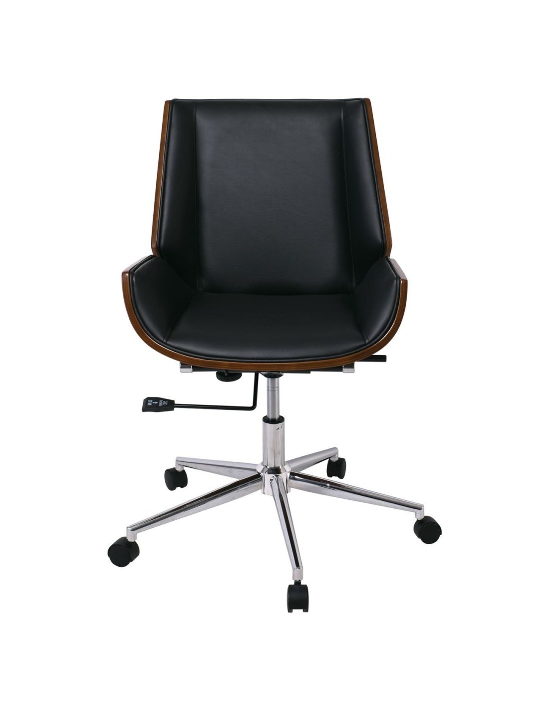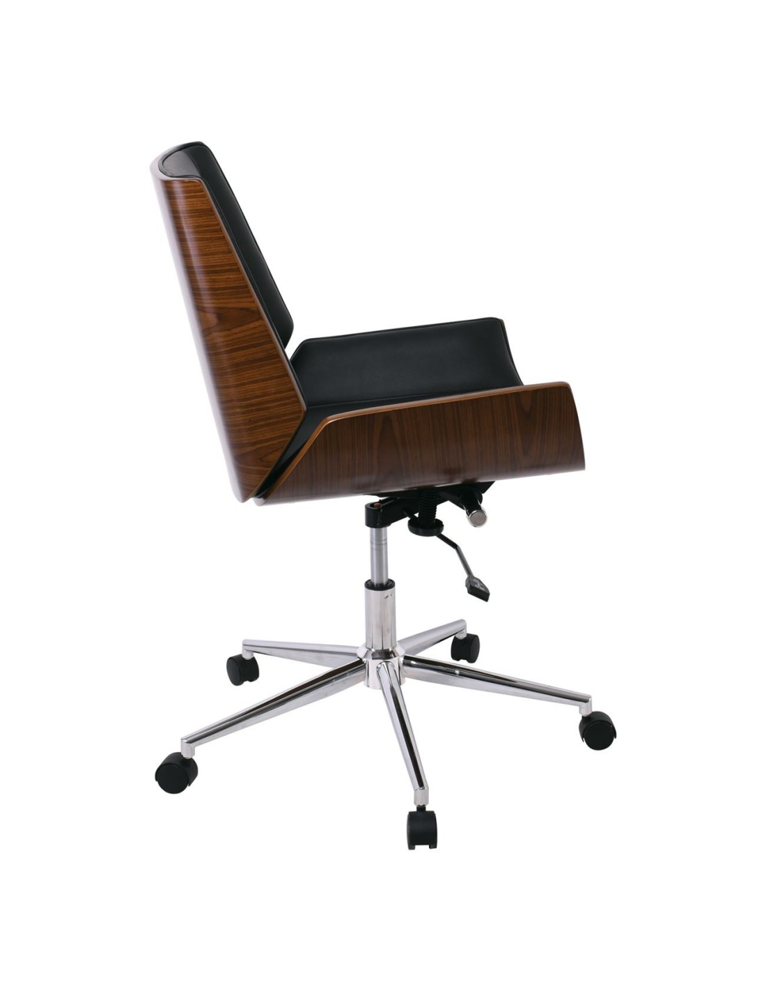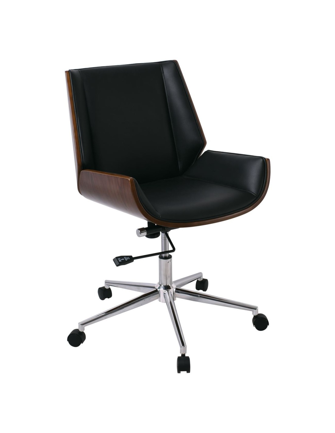 BF9860 Πολυθρόνα Γραφείου Μέταλλο Χρώμιο Καρυδί - Pu Μαύρο