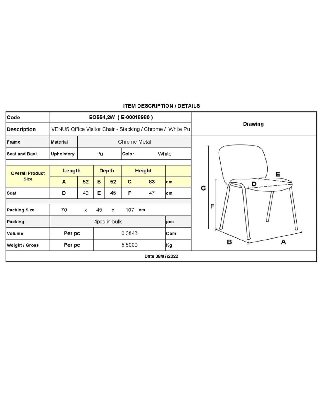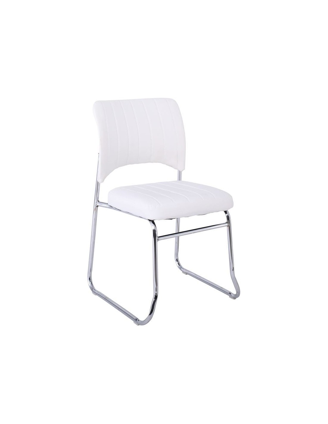 VENUS Καρέκλα Γραφείου Επισκέπτη, Στοιβαζόμενη Μέταλλο Χρώμιο, Pu Άσπρο