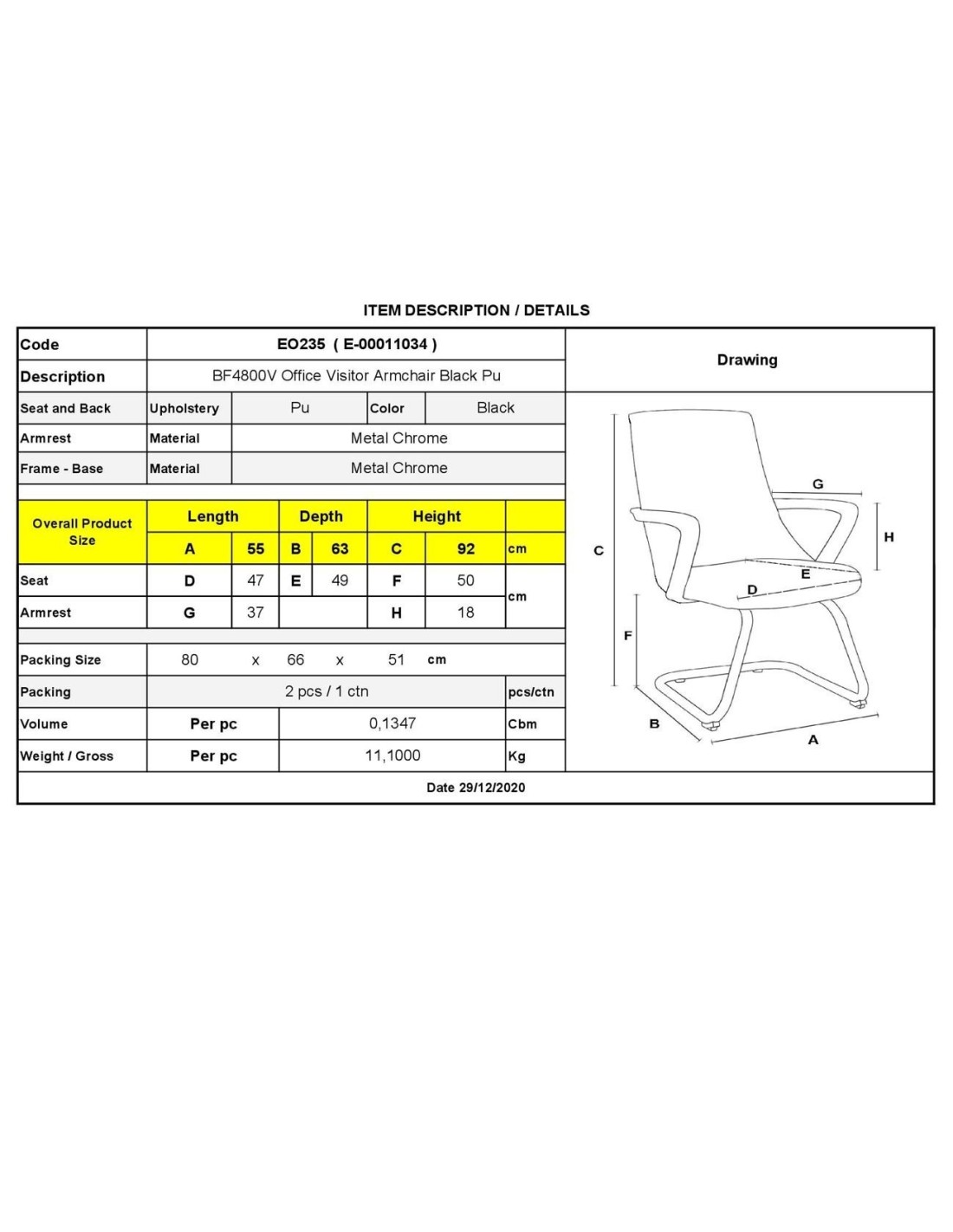 BF4800V Πολυθρόνα Γραφείου Επισκέπτη