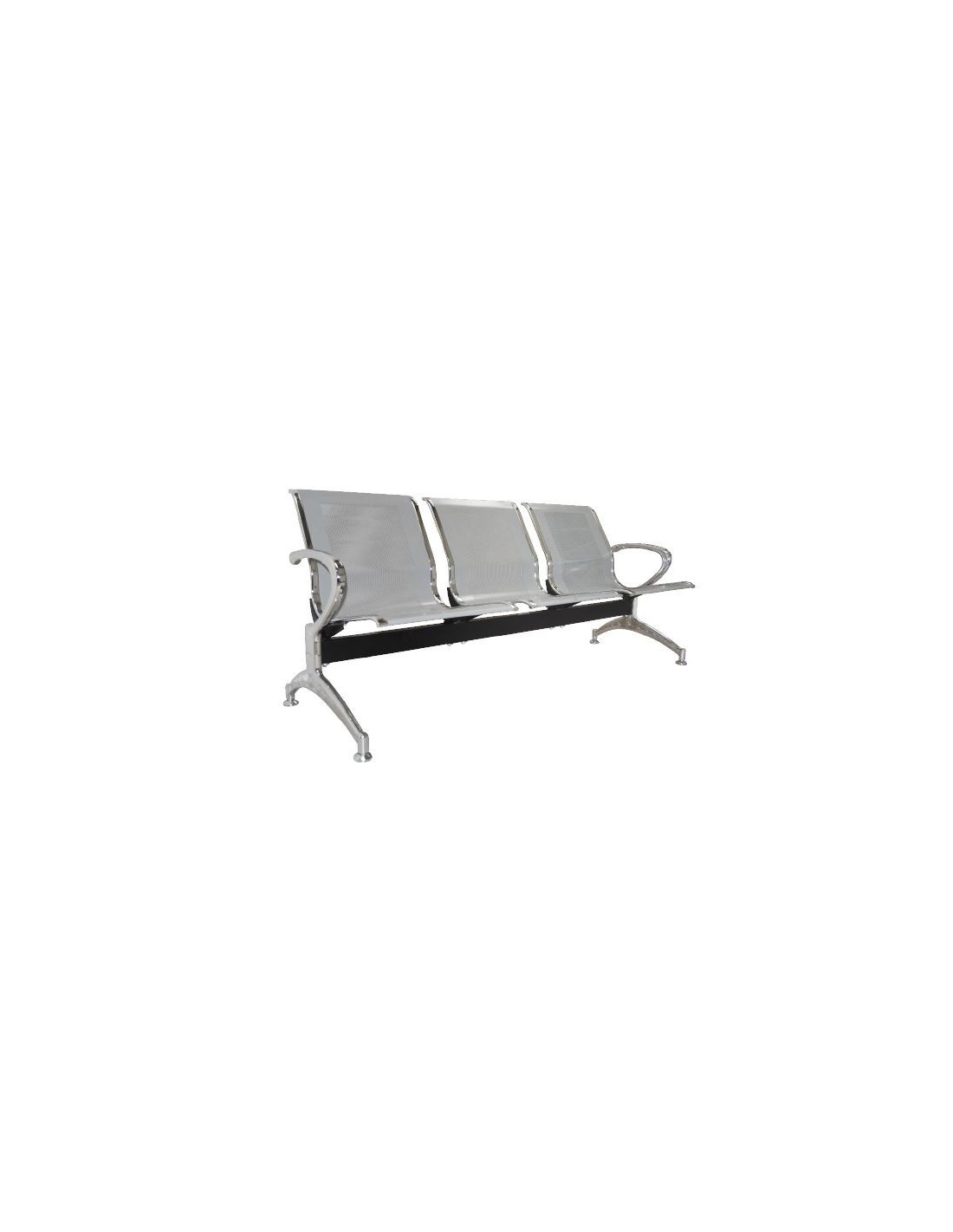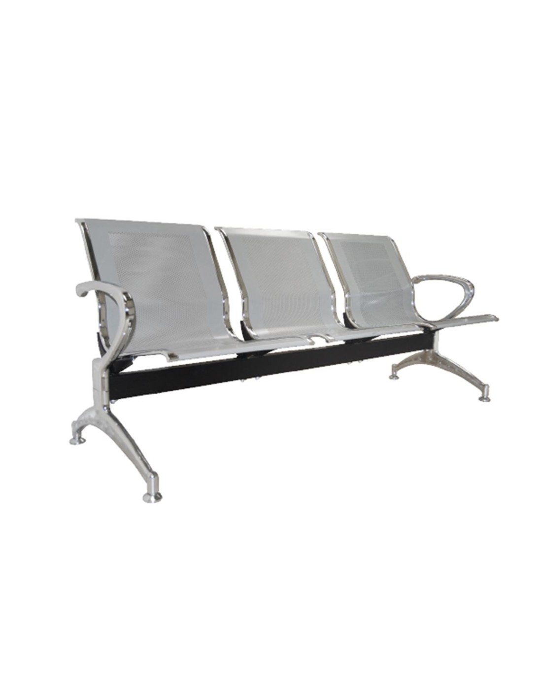 Κάθισμα Αναμονής - Υποδοχής 3 Θέσεων, Μέταλλο Χρώμιο Mesh Γκρι