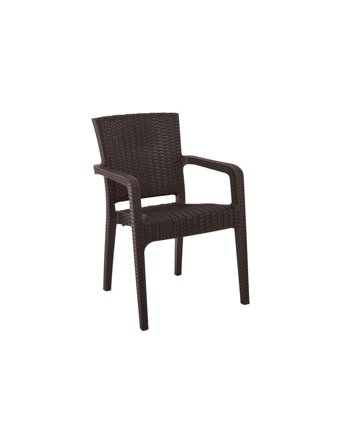 LORA Πολυθρόνα Κήπου Στοιβαζόμενη, PP (Rattan Look) Απόχρωση Καφέ Σκούρο