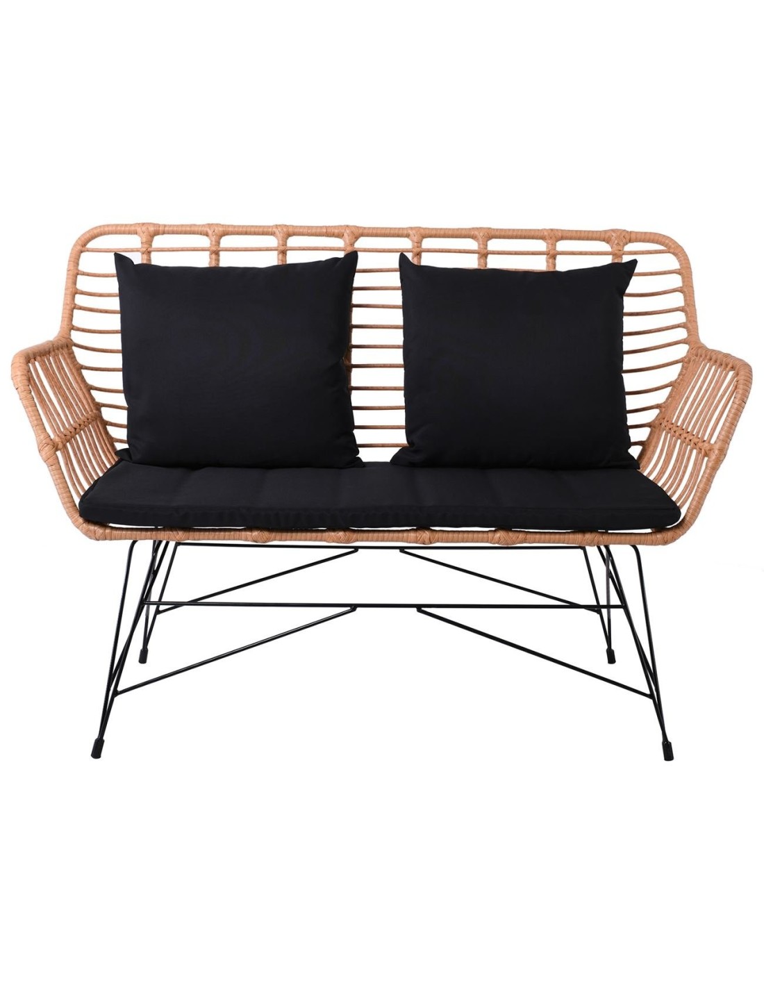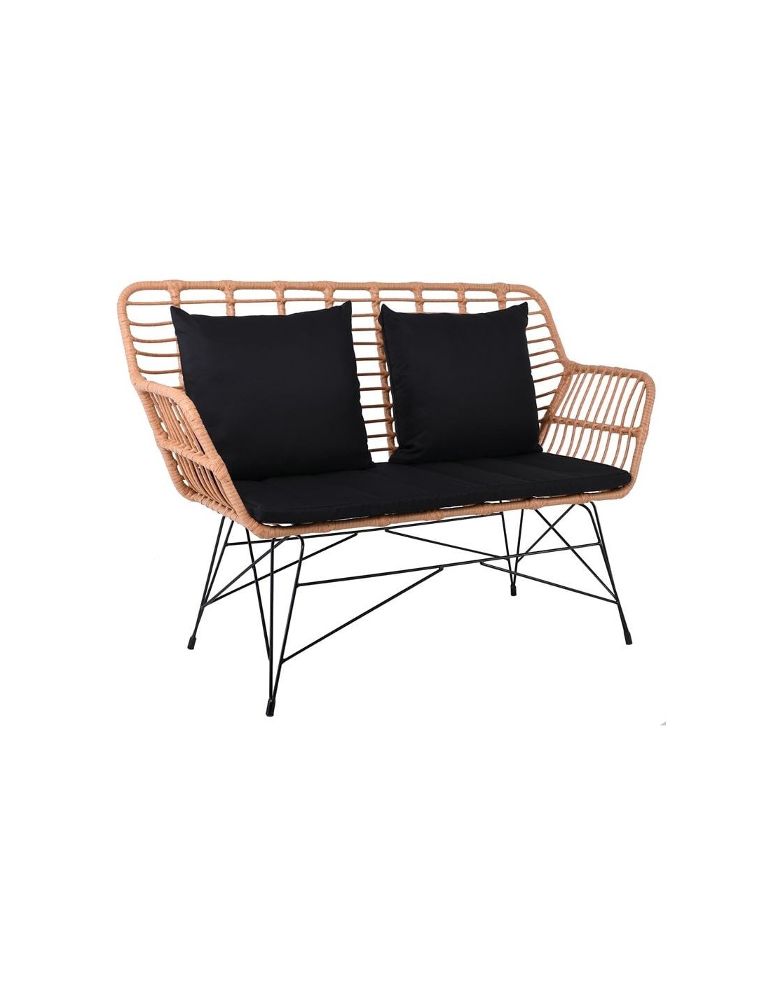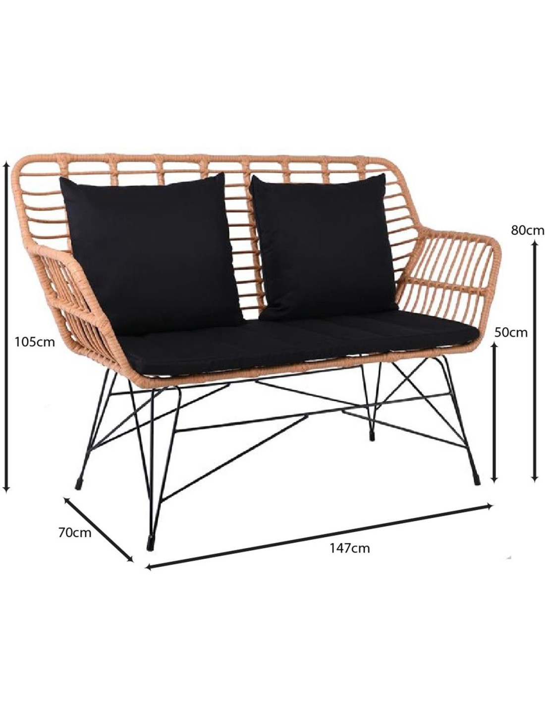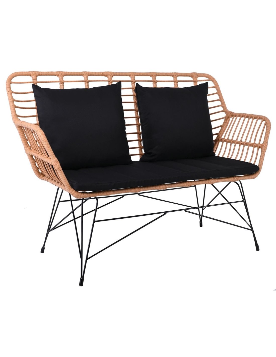 SALSA MAX Living Καναπές Κήπου 2Θέσιος, Μέταλλο Βαφή Μαύρο, Wicker Φυσικό, Μαξιλάρια Μαύρο