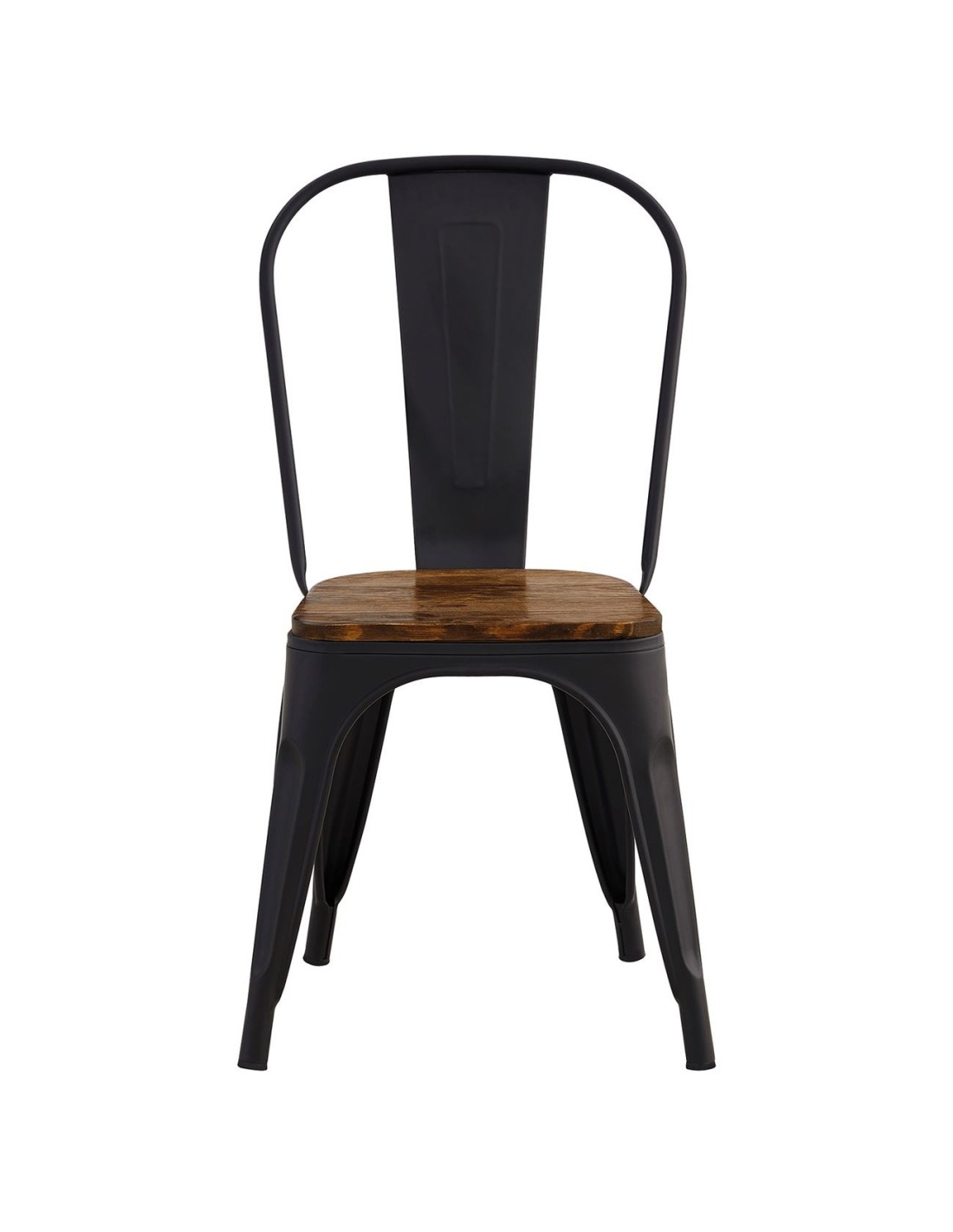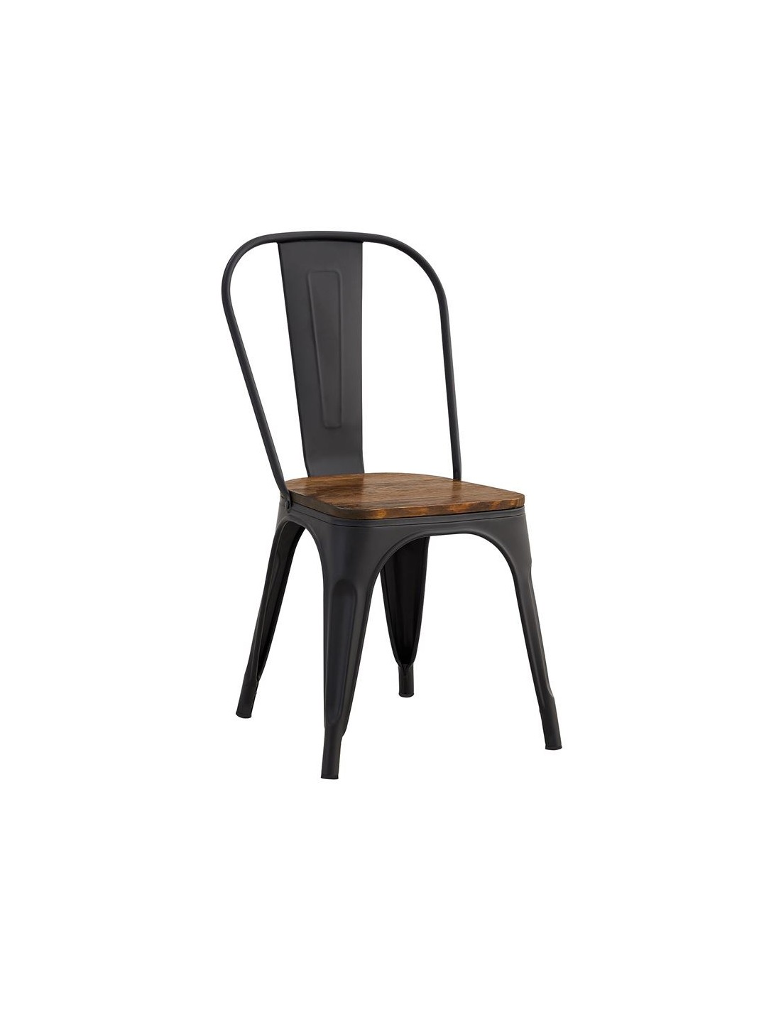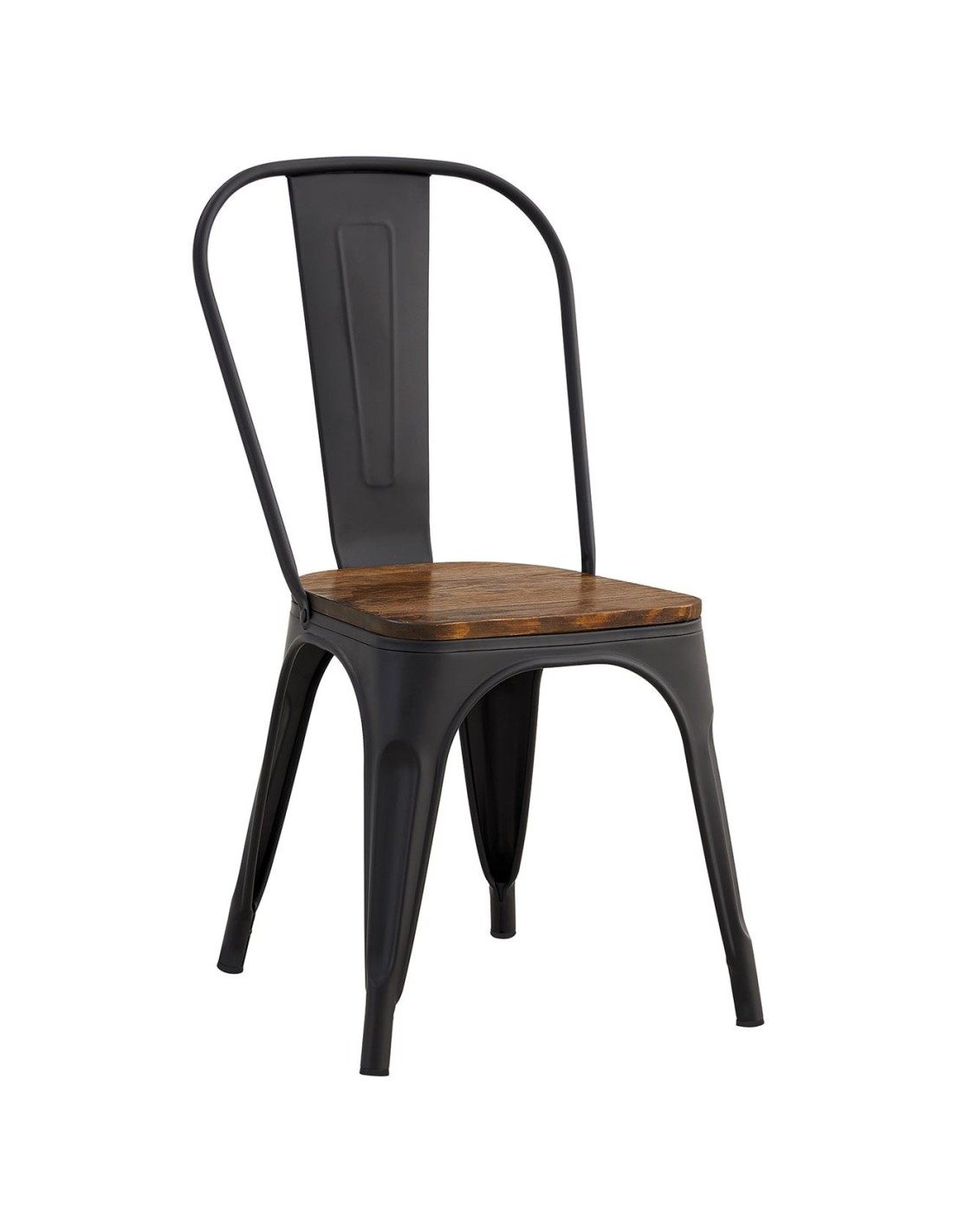 RELIX Wood Καρέκλα Μέταλλο Βαφή Μαύρο Extra Matte, Κάθισμα Dark Oak, Στοιβαζόμενη