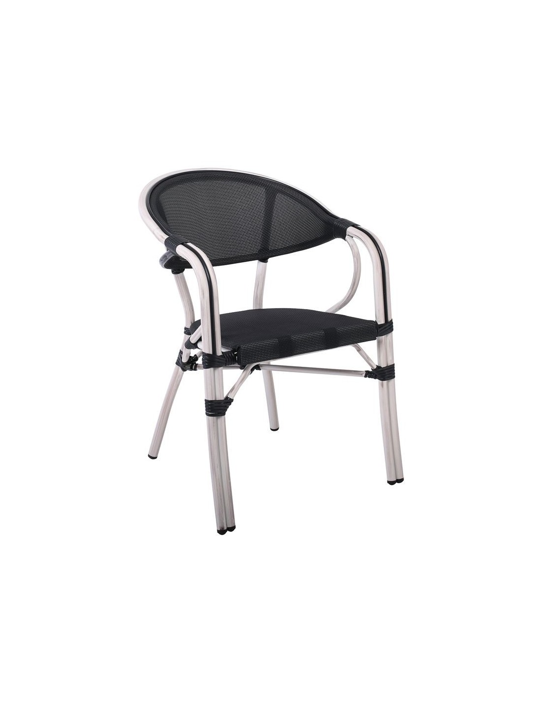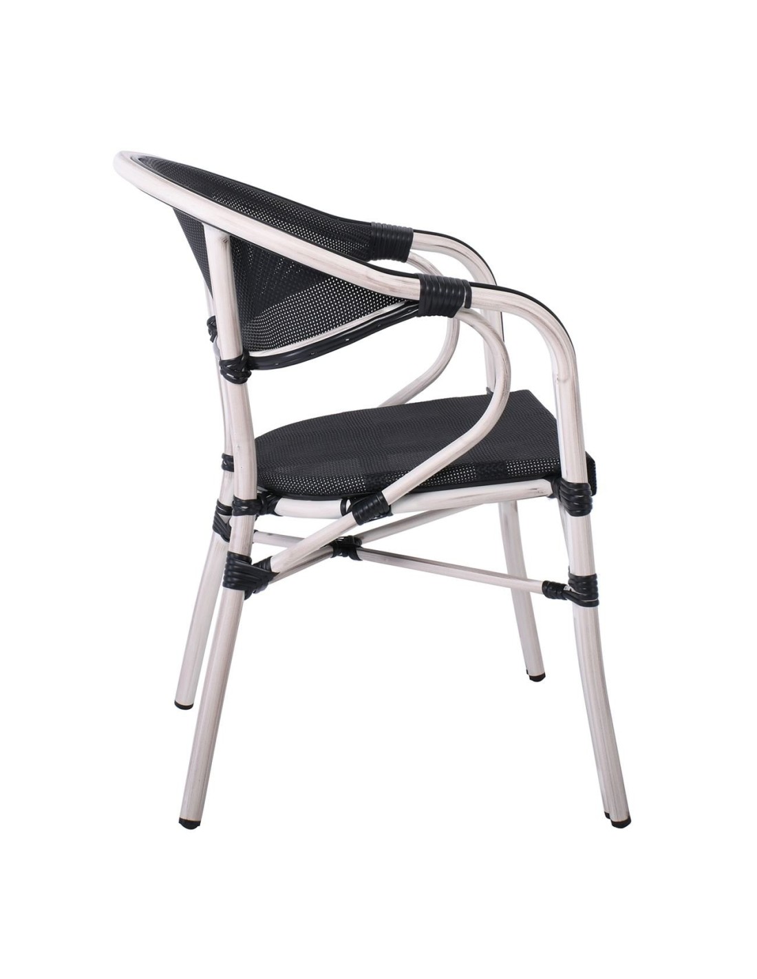 VEGERA Πολυθρόνα Dining Αλουμίνιο Βαφή Antique White Textilene Μαύρο, Στοιβαζόμενη