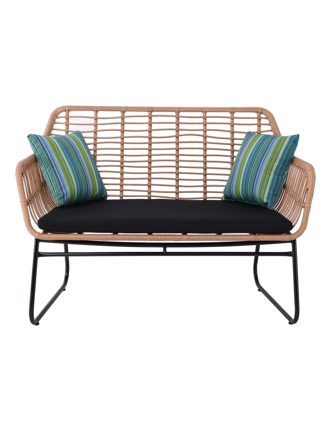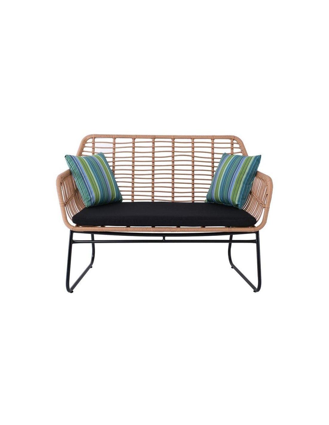 SALSA Καναπές Κήπου 2Θέσιος Μέταλλο Βαφή Μαύρο, Wicker Φυσικό, Μαξιλάρι Μαύρο