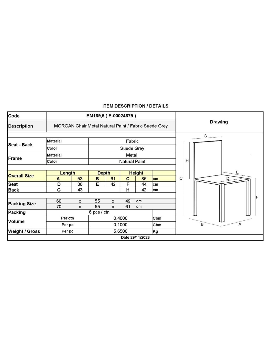 MORGAN Καρέκλα Τραπεζαρίας Σαλονιού, Μέταλλο Βαφή Φυσικό, Ύφασμα Suede Ανθρακί