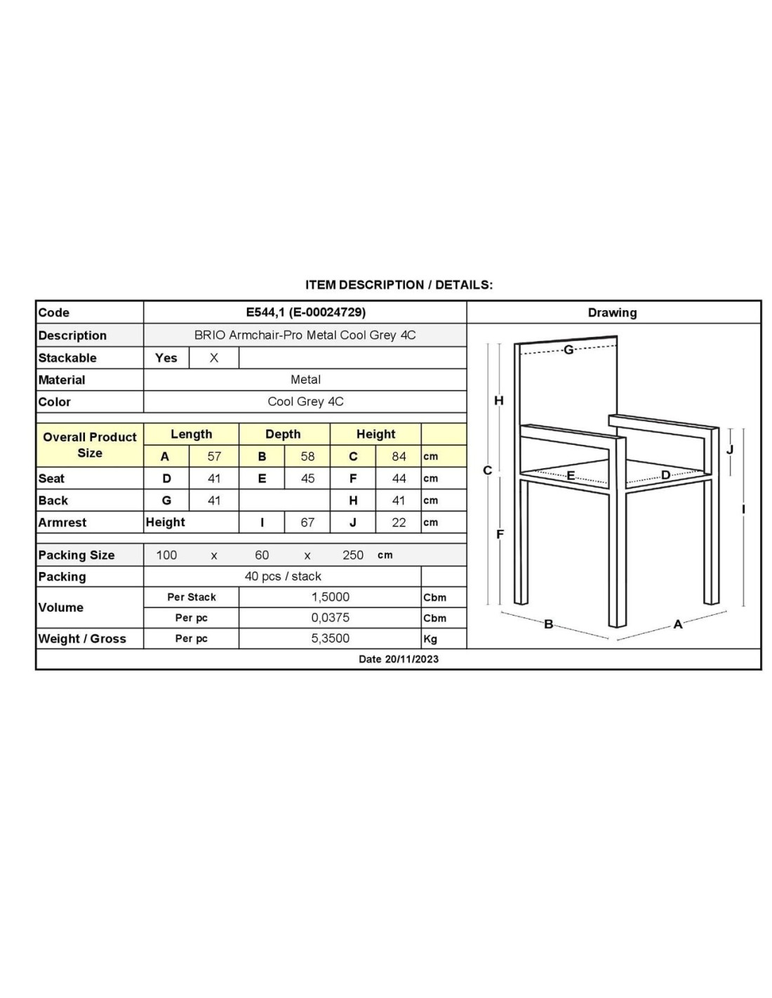 BRIO Πολυθρόνα-Pro Στοιβαζόμενη, Μέταλλο Βαφή Cool Grey 4C