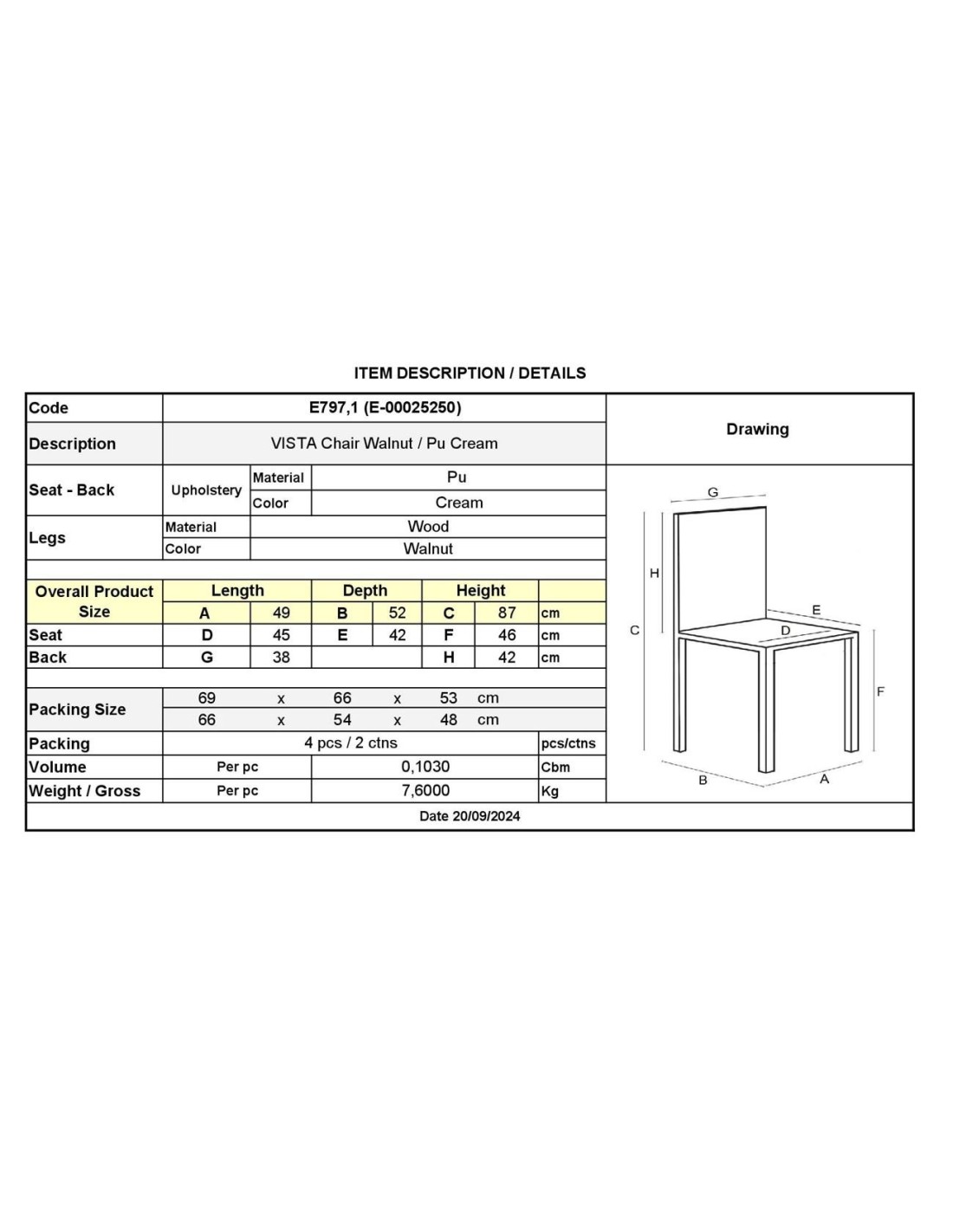 VISTA Καρέκλα Τραπεζαρίας- Κουζίνας, Απόχρωση Καρυδί, Pu Εκρού