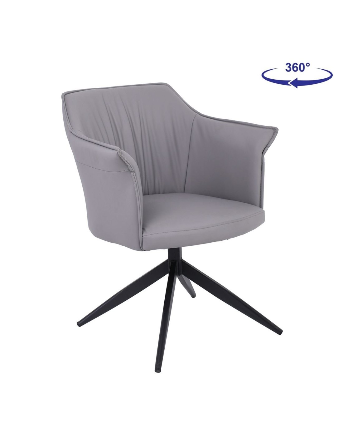 EVELYN Πολυθρόνα Περιστρεφόμενη, Μέταλλο Βαφή Μαύρο, Pu Γκρι
